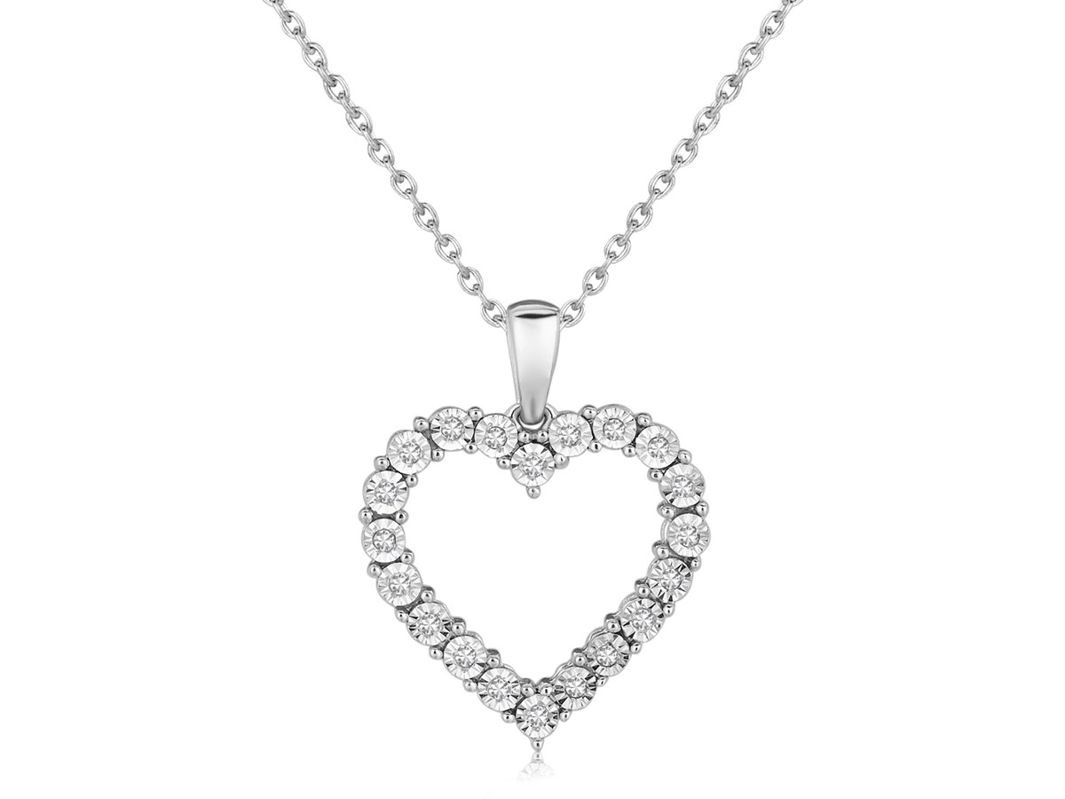 Diamond Studded Open Heart Pendant in Sterling Silver (.10 ct t.w.)
