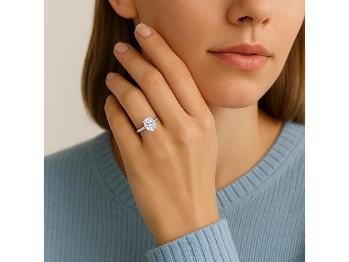 Celebrate a love that lasts with this captivating 1 1/2 carat oval lab-grown diamond solitaire ring crafted to turn life's special moments into lasting memories. IGI certified and graded G color with VS1 clarity, the diamond radiates with exceptional brilliance and premium quality you can trust. Set securely in a classic four-prong setting atop a polished sterling silver band, this timeless design is a graceful symbol of love, commitment, and elegance. Perfect for a proposal, anniversary, or meaningful milestone, this ring is made to be cherished forever. Add it to your cart today and let your story begin with brilliance.