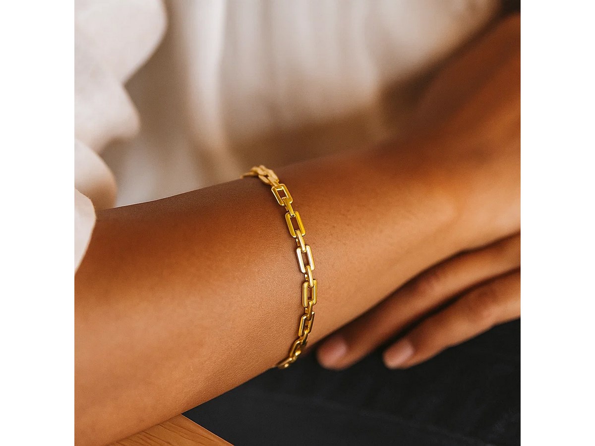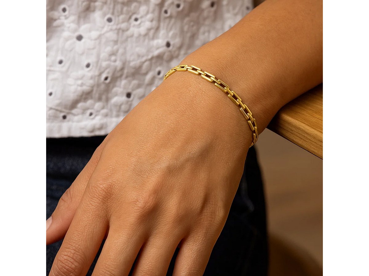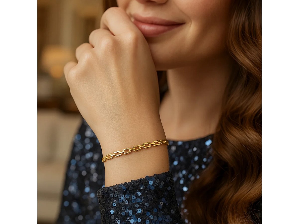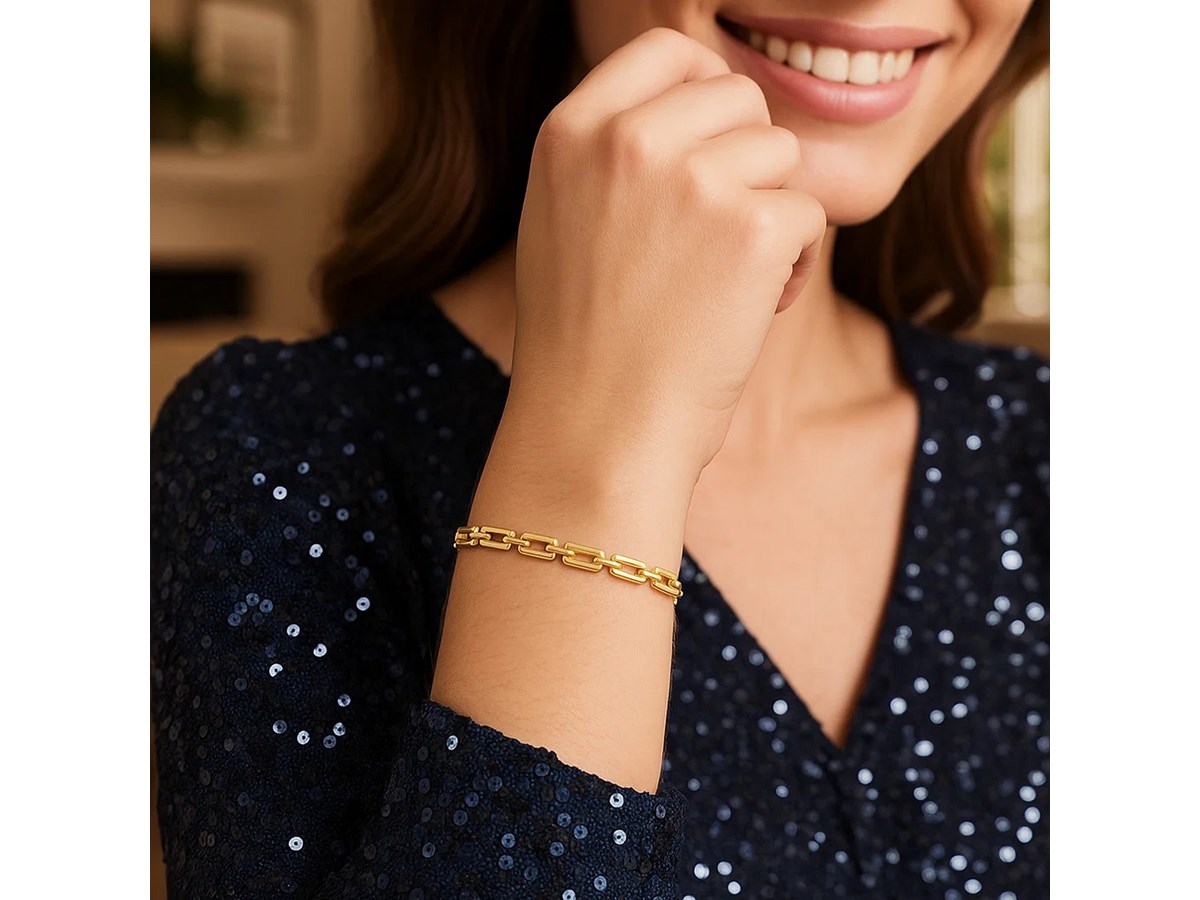 Sophisticated and timeless, this 10K Yellow Gold Deco Link Bracelet features beautifully crafted geometric links inspired by classic Art Deco design. Its sleek, polished finish catches the light with every movement, creating a refined look that transitions effortlessly from everyday wear to special occasions. A standout piece that adds vintage charm and modern elegance to any jewelry collection.