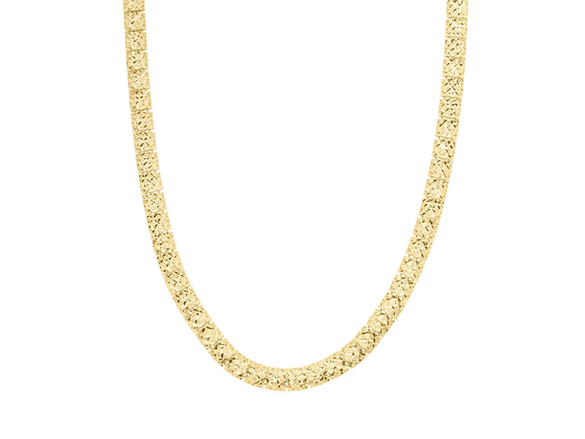 10K Yellow Gold Diamond Cut Square Link Necklace