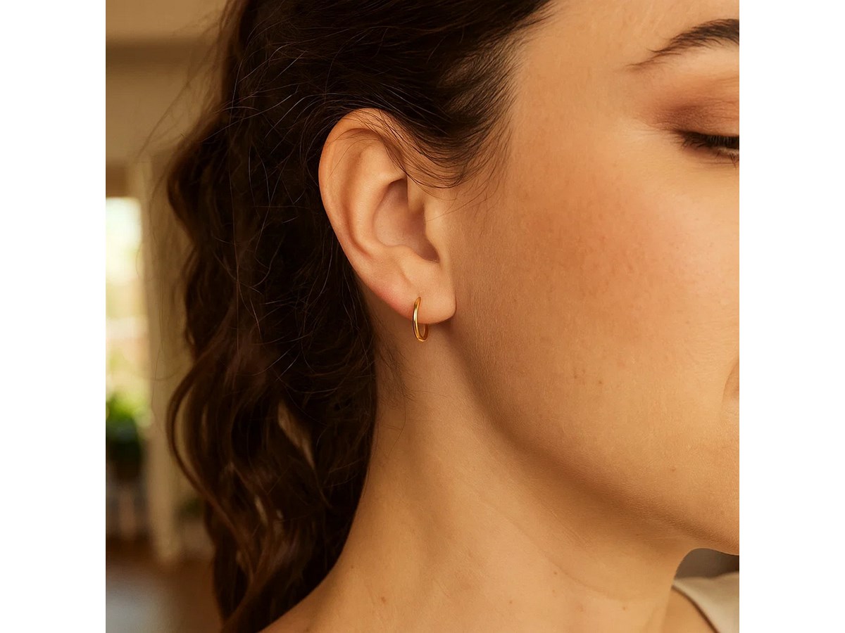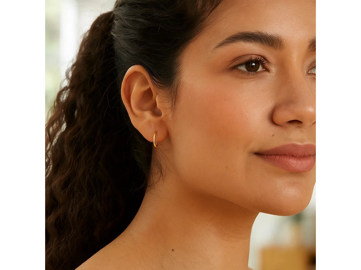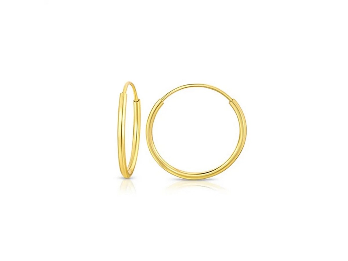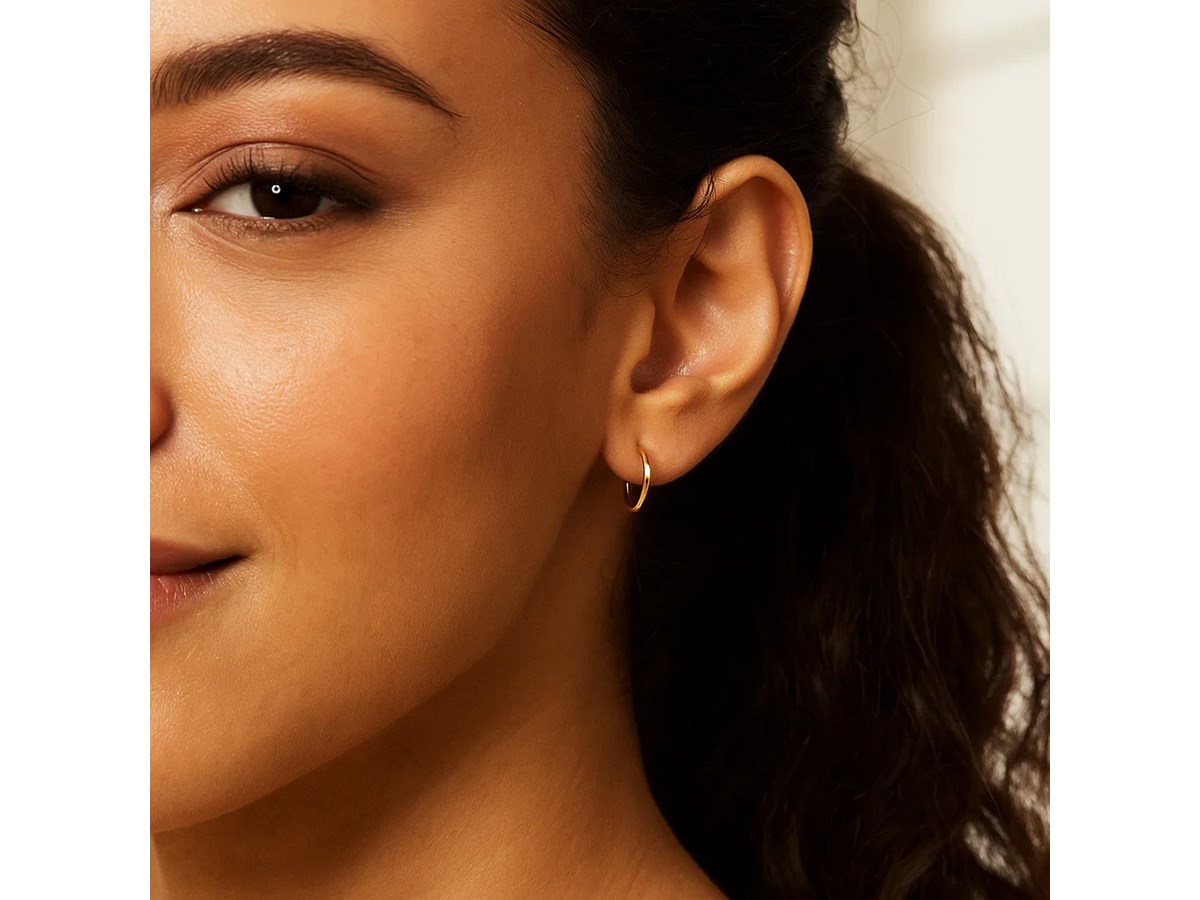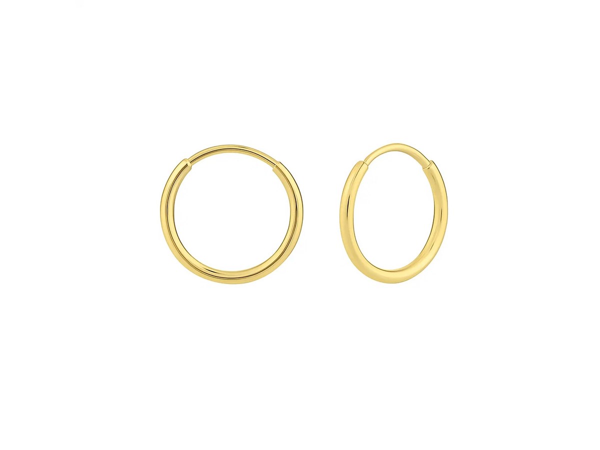 Chic 10K yellow gold mini endless hoop earrings featuring a seamless circular design and polished finish. Lightweight and comfortable, these timeless hoops offer understated elegance, perfect for everyday wear or effortless layering with other earrings.