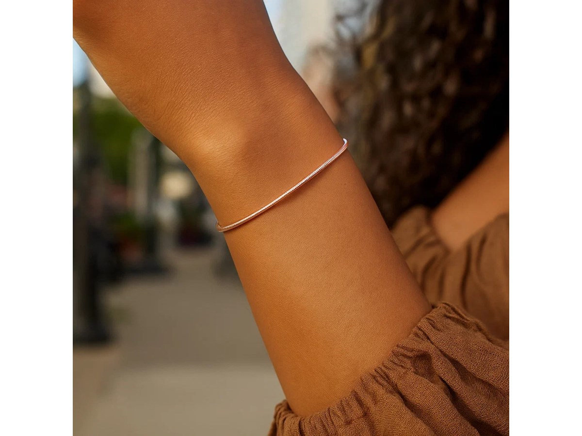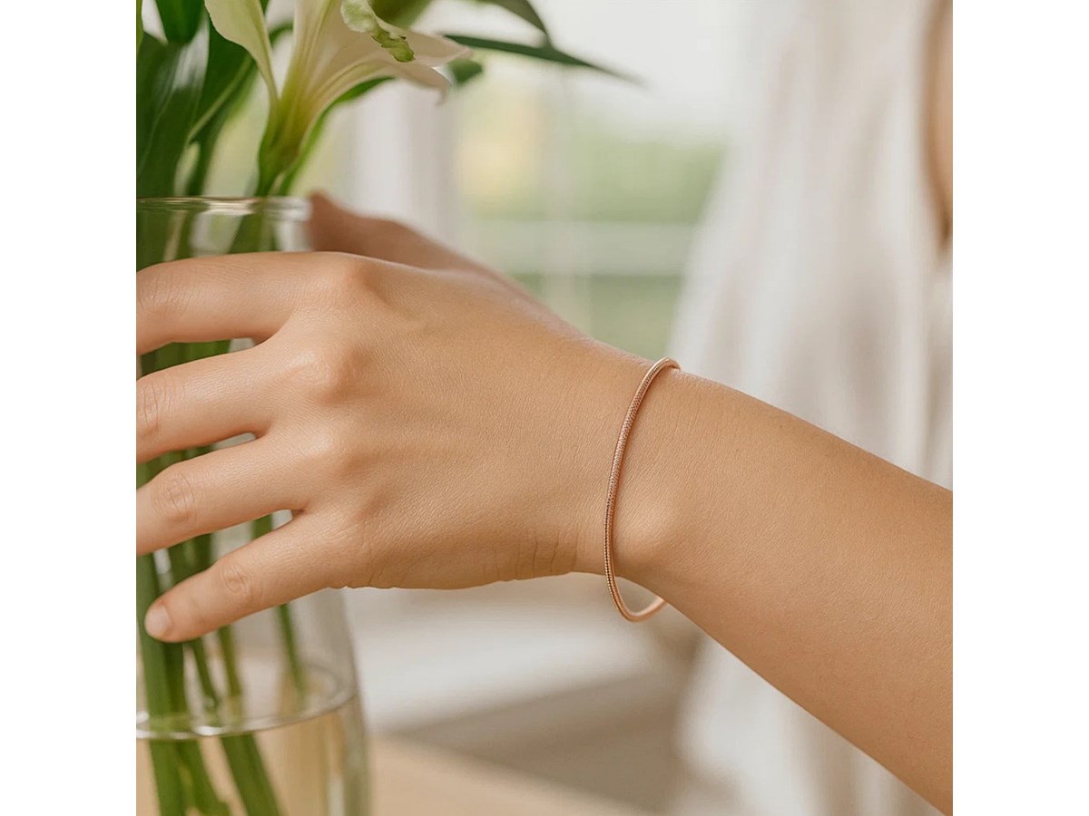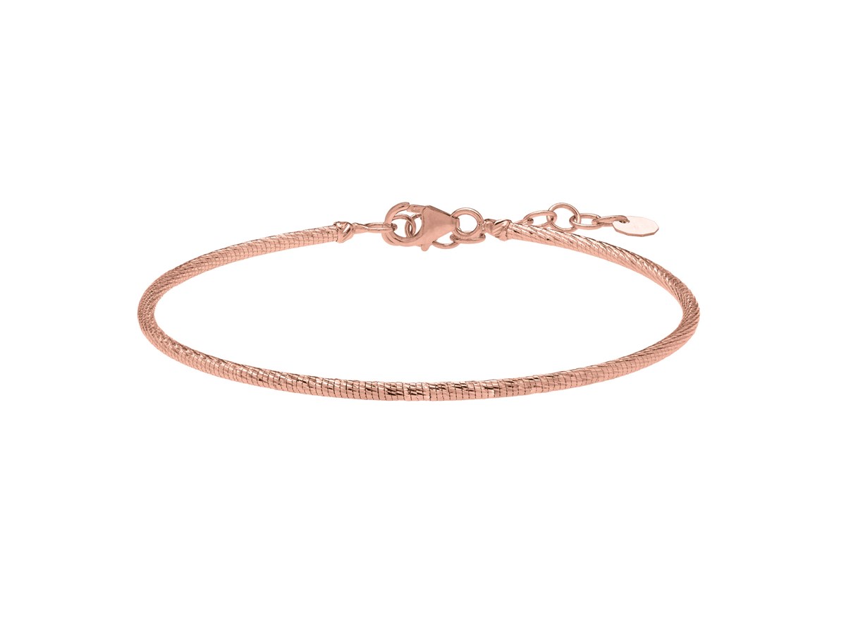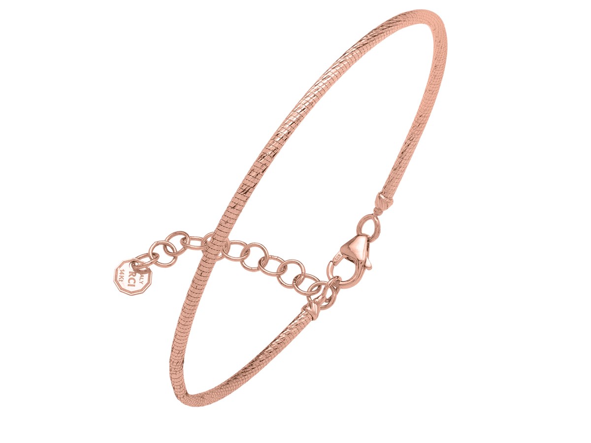 Crafted in 14K rose gold, this elegant 7 inches diamond cut stack bangle bracelet adds brilliance and texture to any look. Designed with a pear shaped lobster clasp for secure wear, it’s perfect for stacking or as a standalone statement piece.