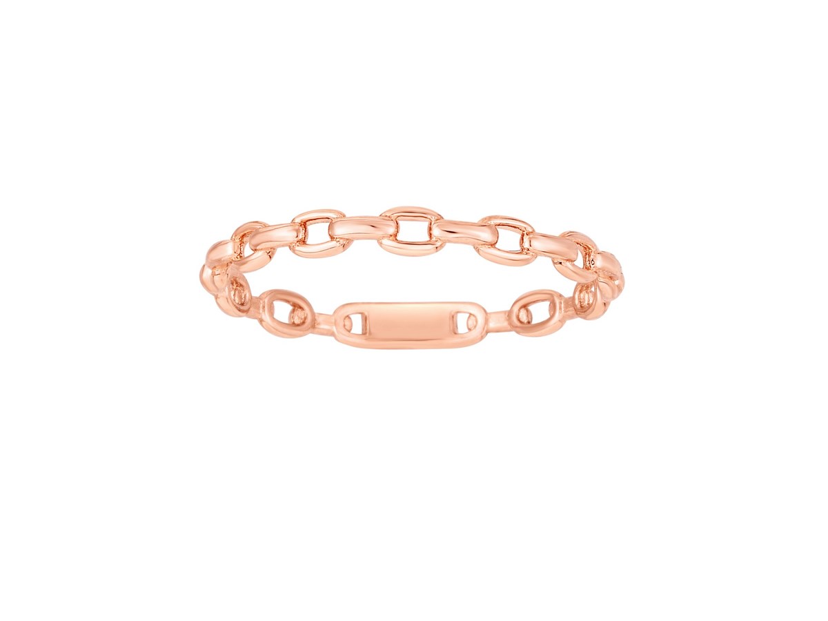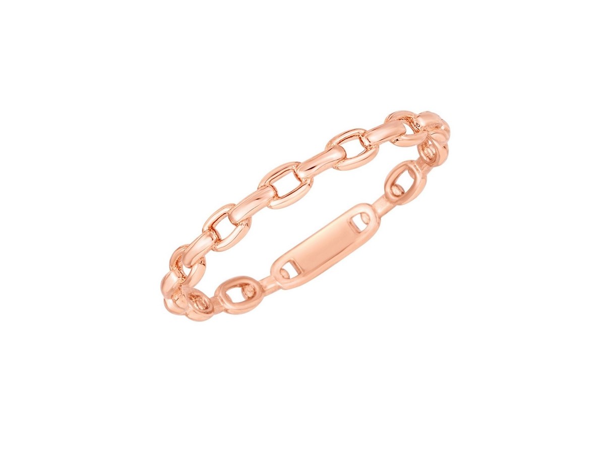 14K Rose Gold Oval Links Stackable Ring featuring polished oval link motifs crafted in solid 14K rose gold. Its slim, modern design adds soft warmth and texture, making it perfect for stacking or wearing as a delicate standalone accent.