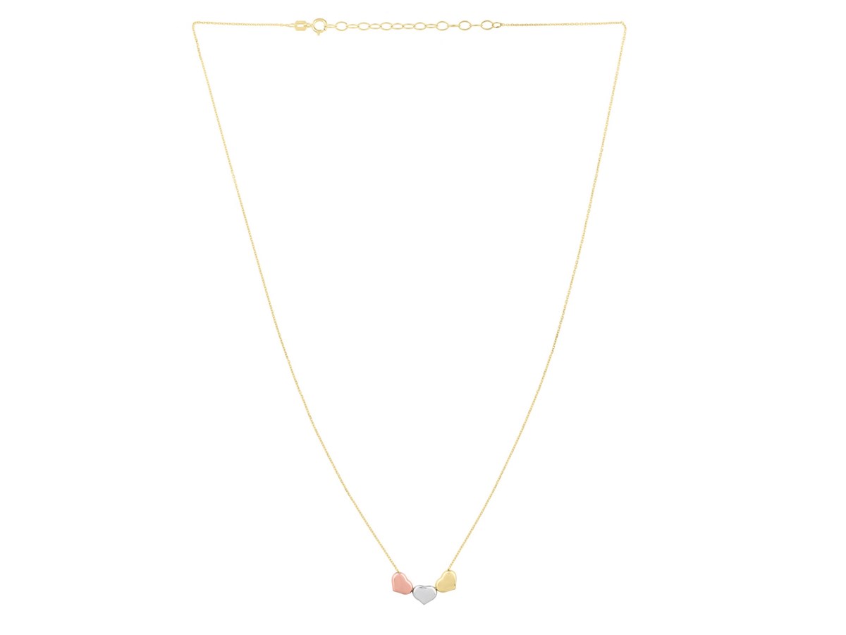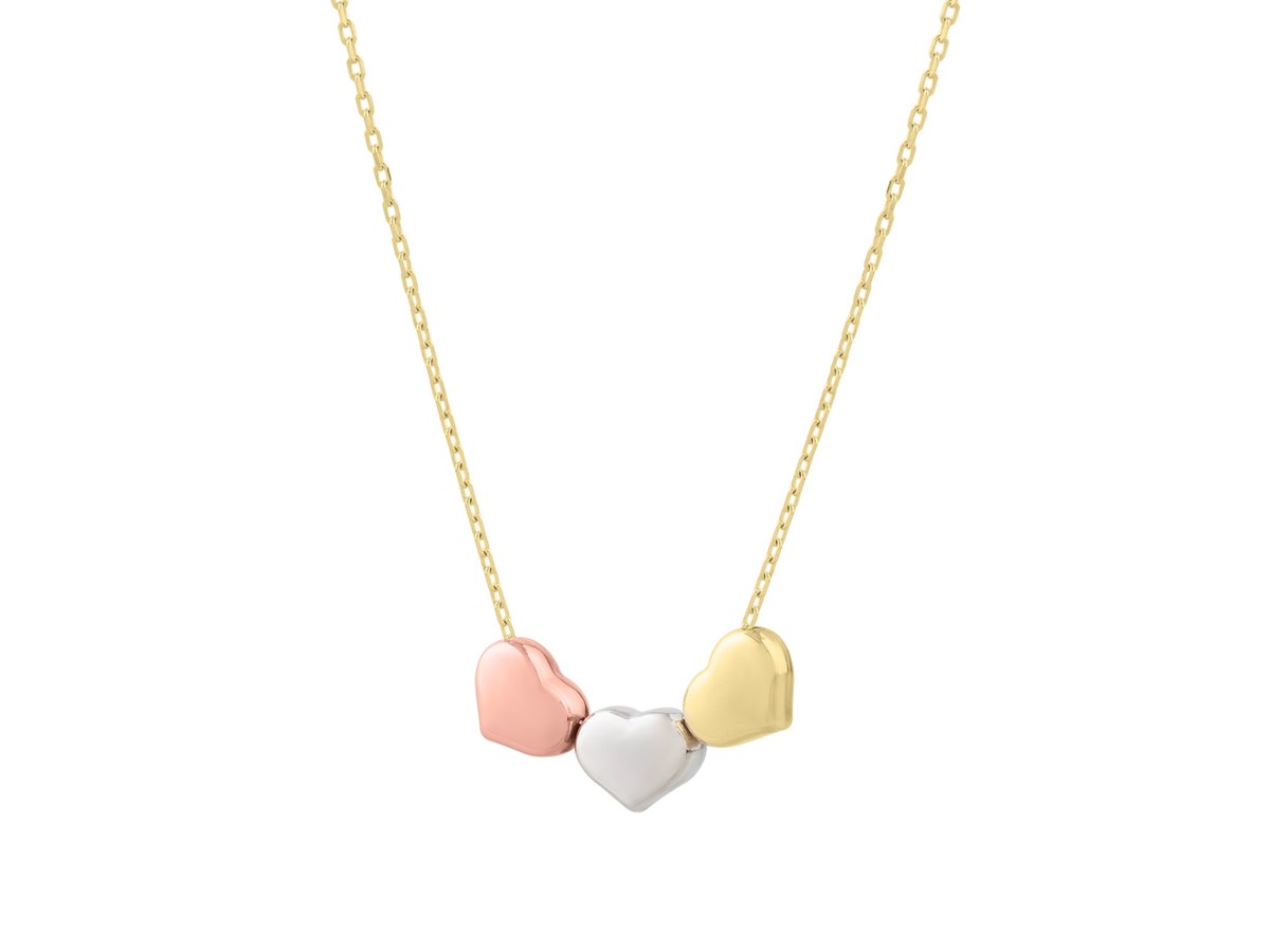 14K Tri Color Gold Triple Heart Necklace