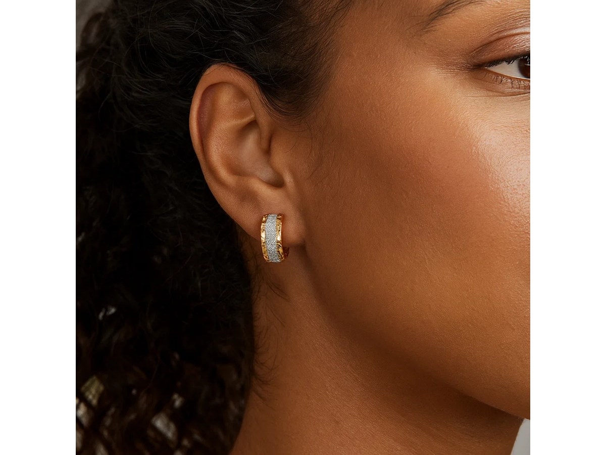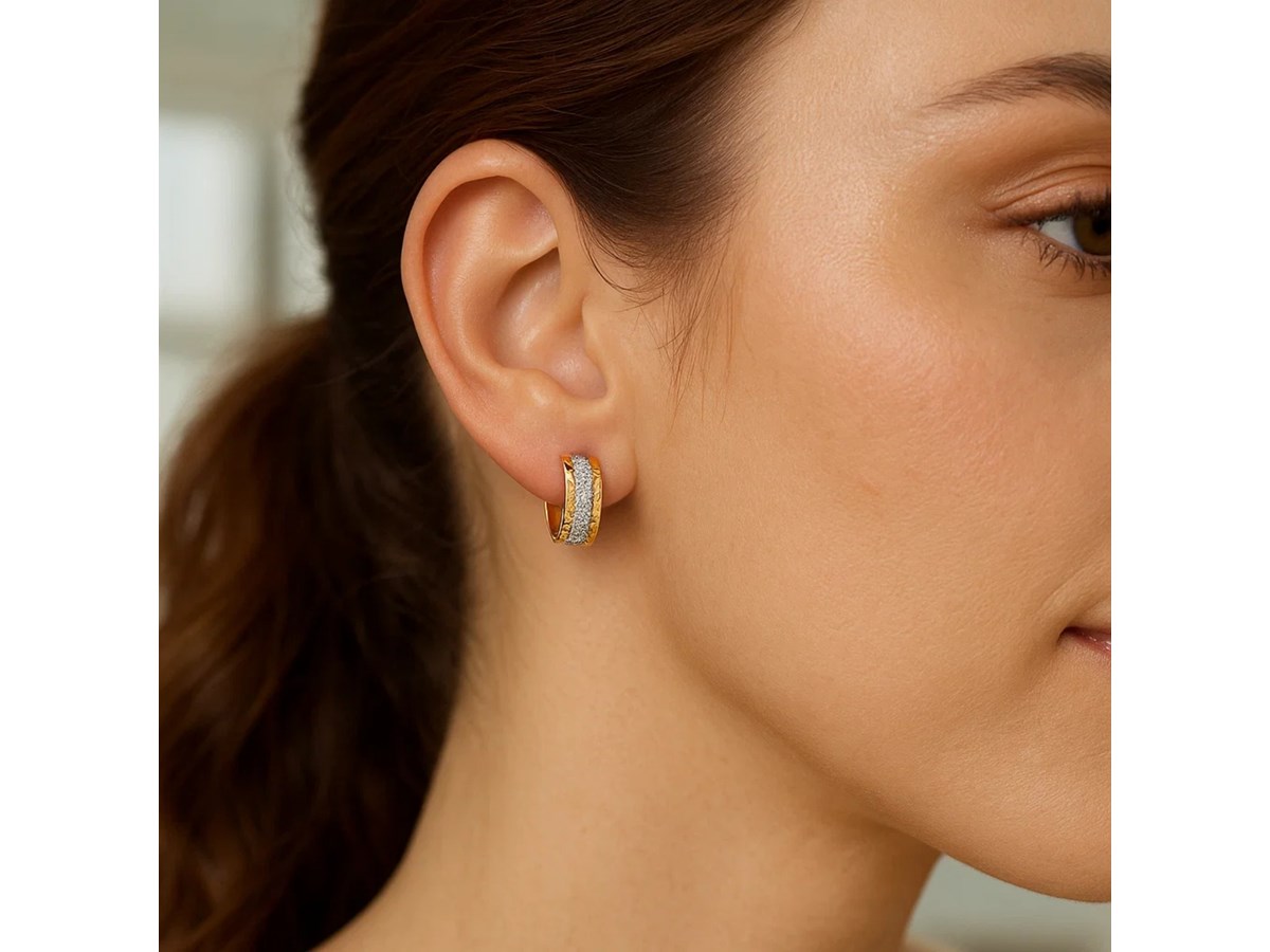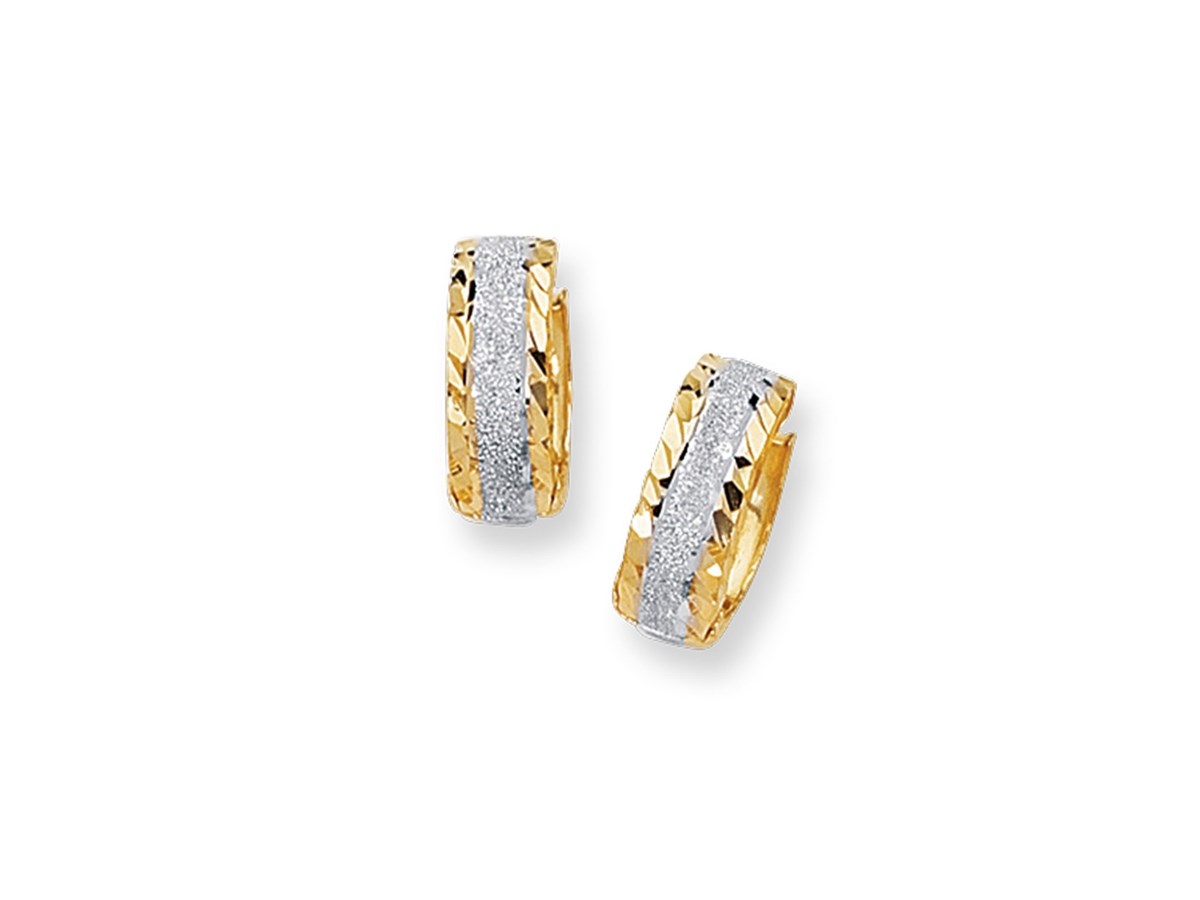 14K Two Tone Gold Center Huggie Earrings