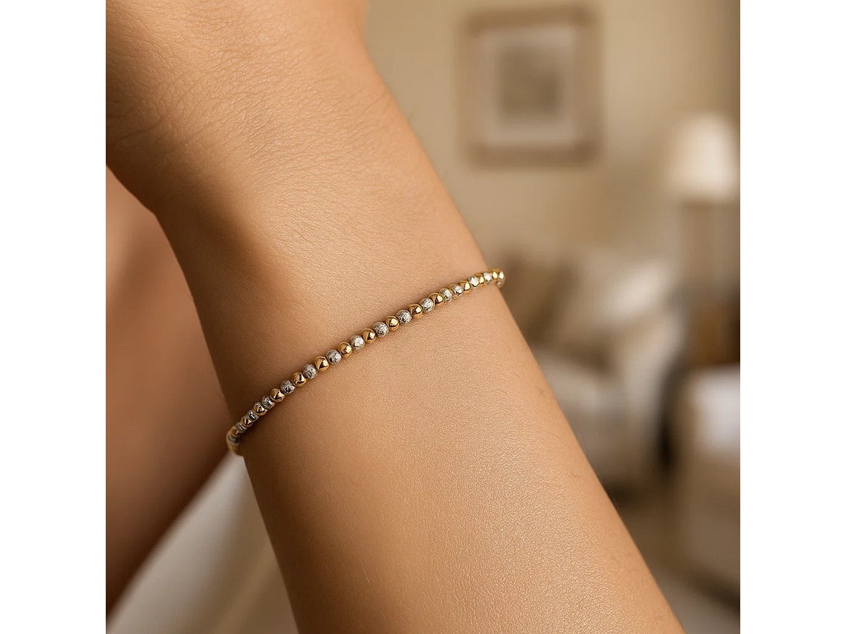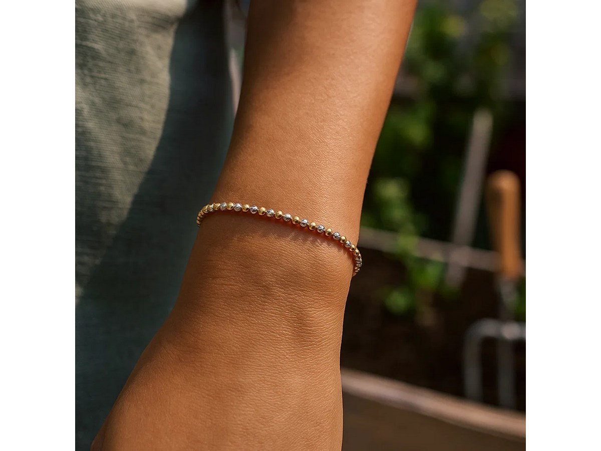 Elevate your everyday style with this 14K two-tone gold Pallina bead bracelet, featuring 2.10 mm polished beads that create a subtle, radiant shimmer. Its modern mixed-metal design adds effortless sophistication, perfect for stacking or wearing solo.