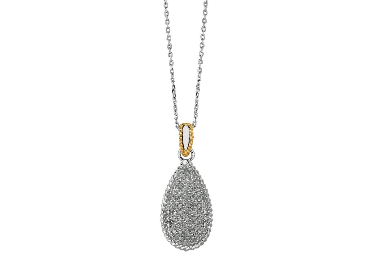 This 14K two-tone gold teardrop necklace features an elegant layered pendant combining white and yellow gold for a modern, contrasting look. Delicate and timeless, it’s perfect for everyday wear, special occasions, or adding a refined touch to any outfit.