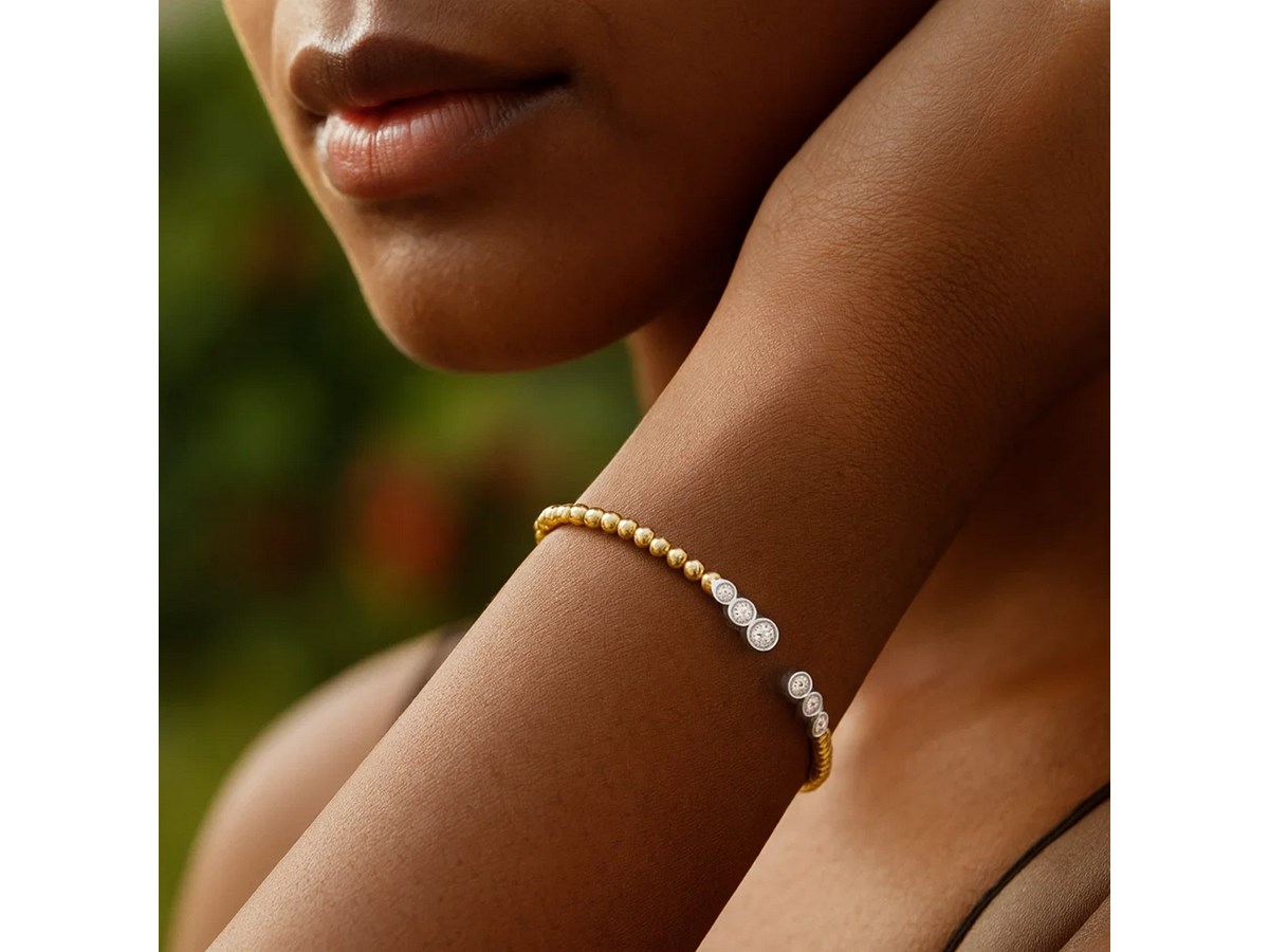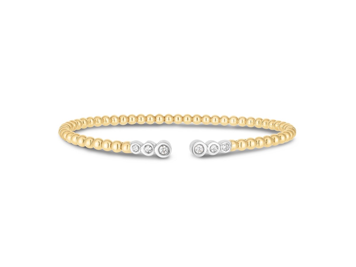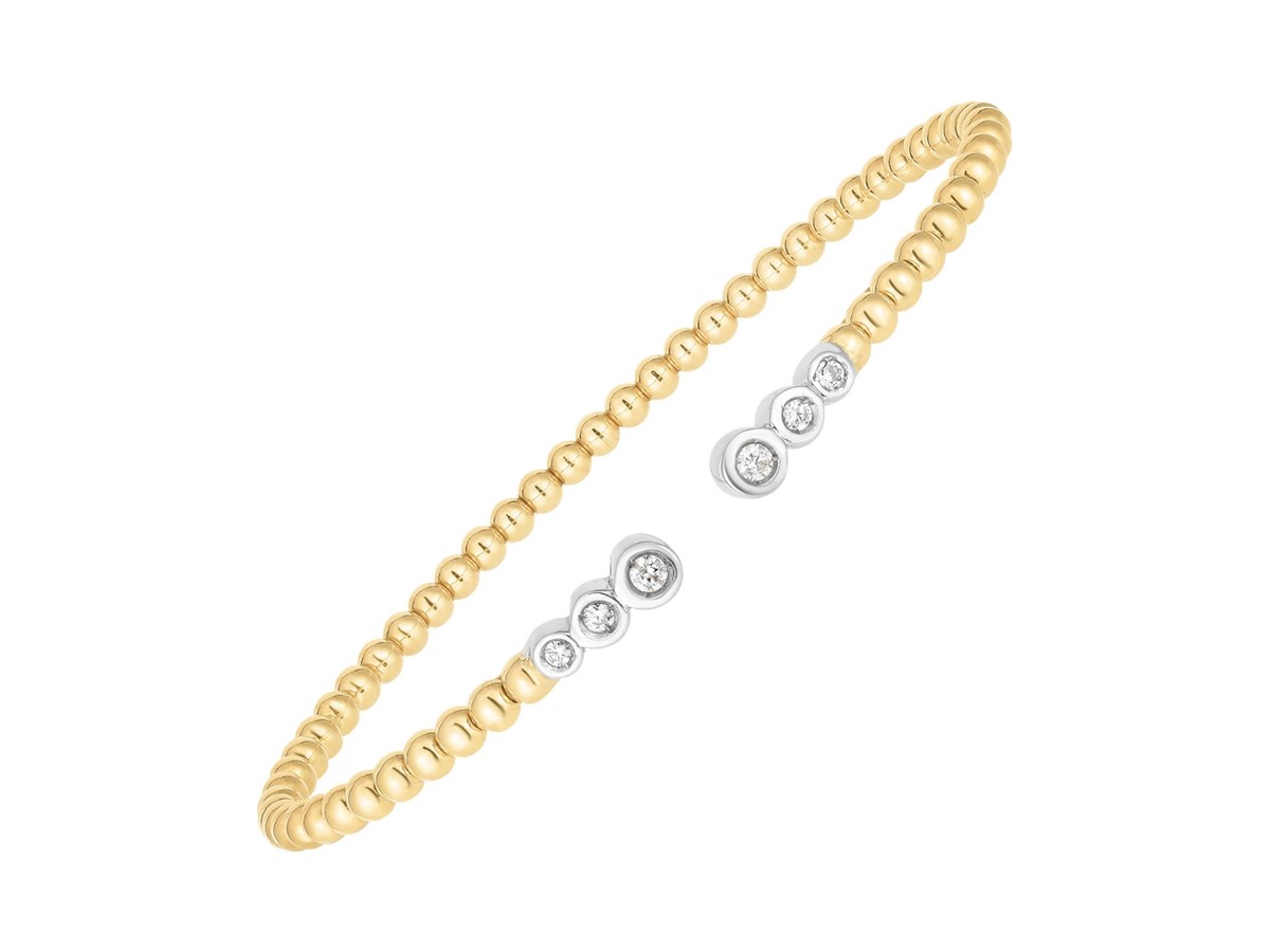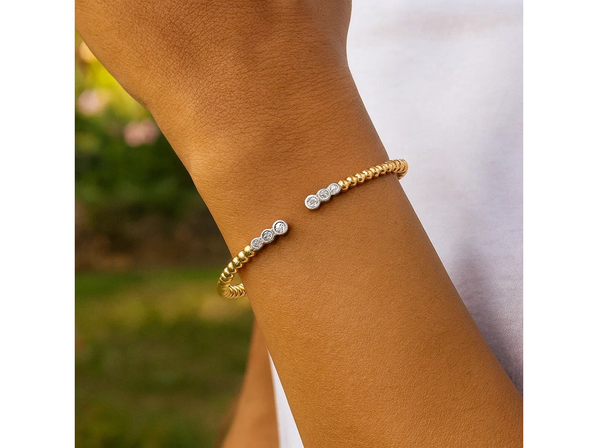 14K Two Tone Polish Diamond Pallina Open Beaded Cuff Bangle (3.00 mm)