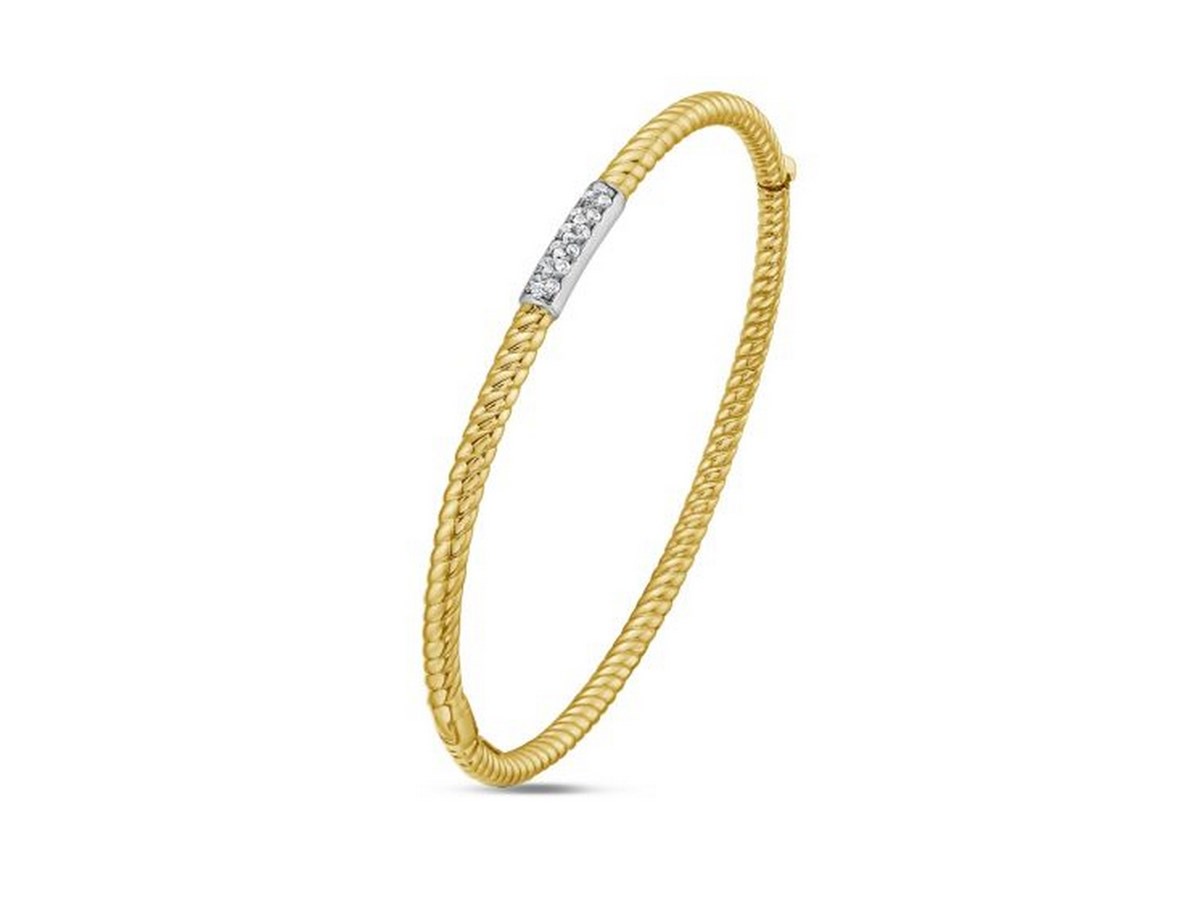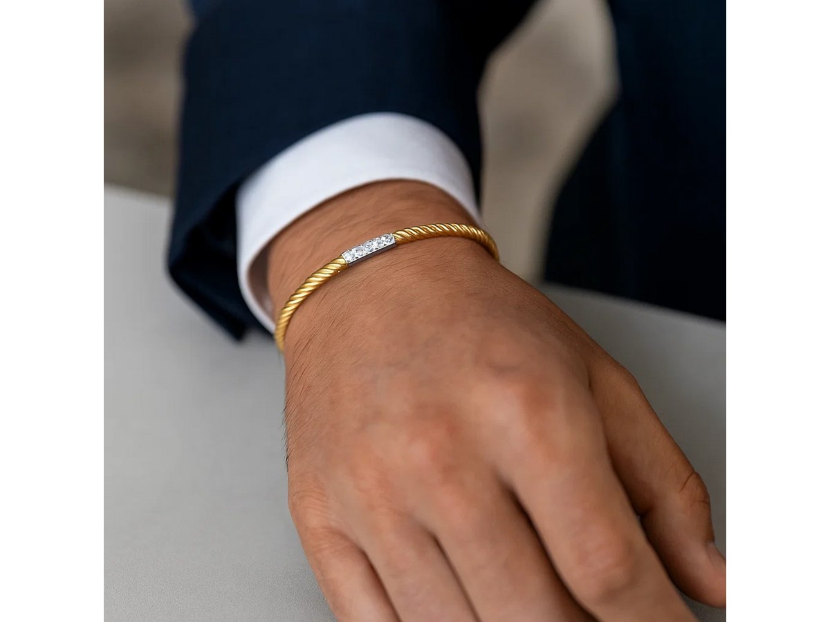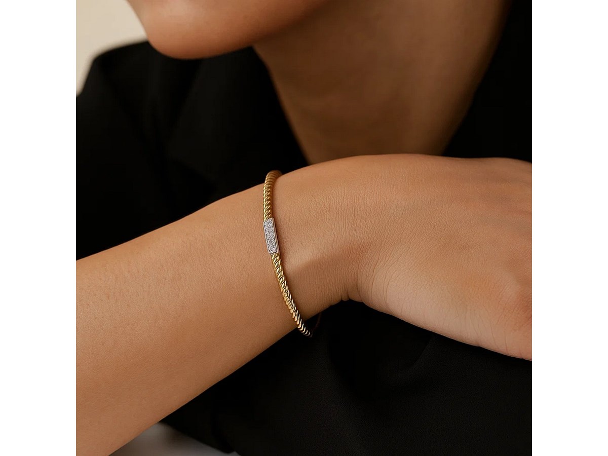 14K TwoTone Gold With Diamond Italian Cable Bracelet