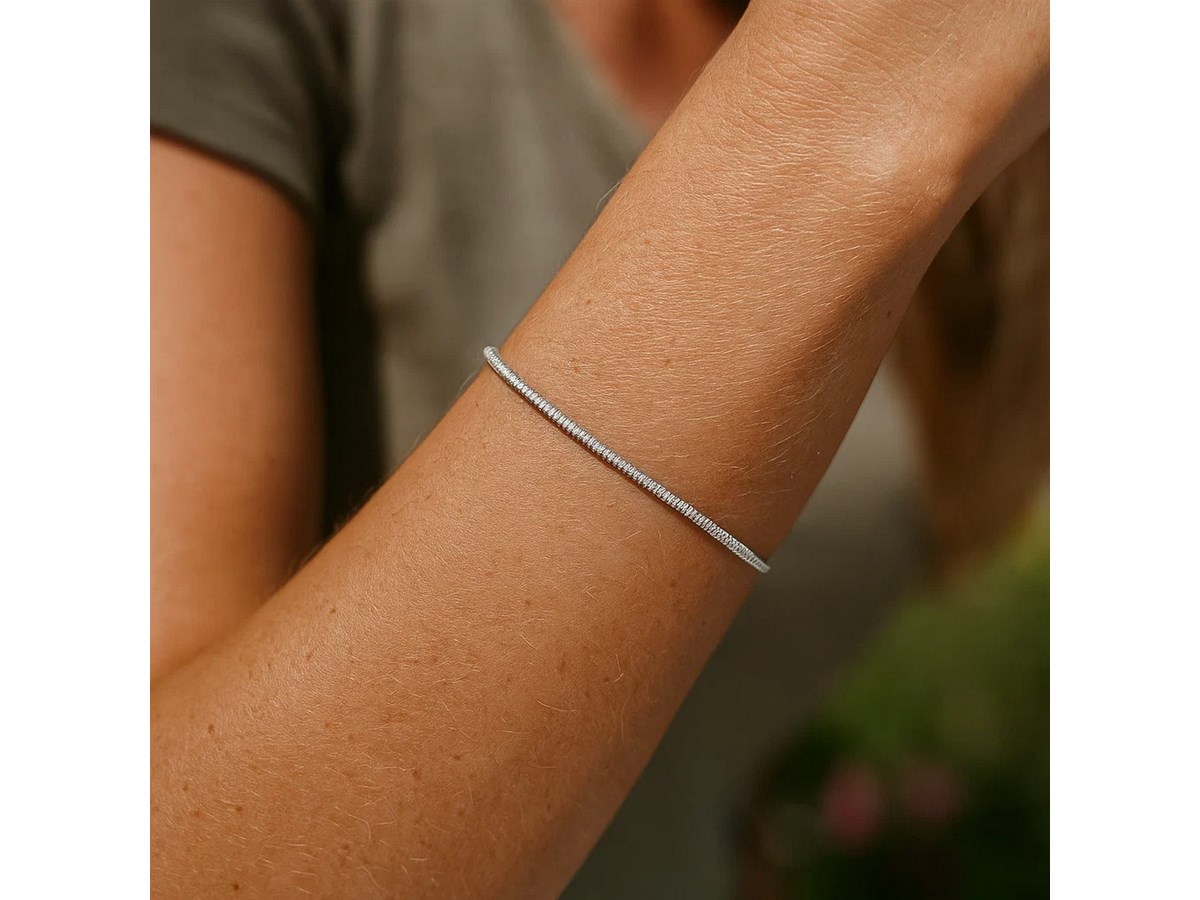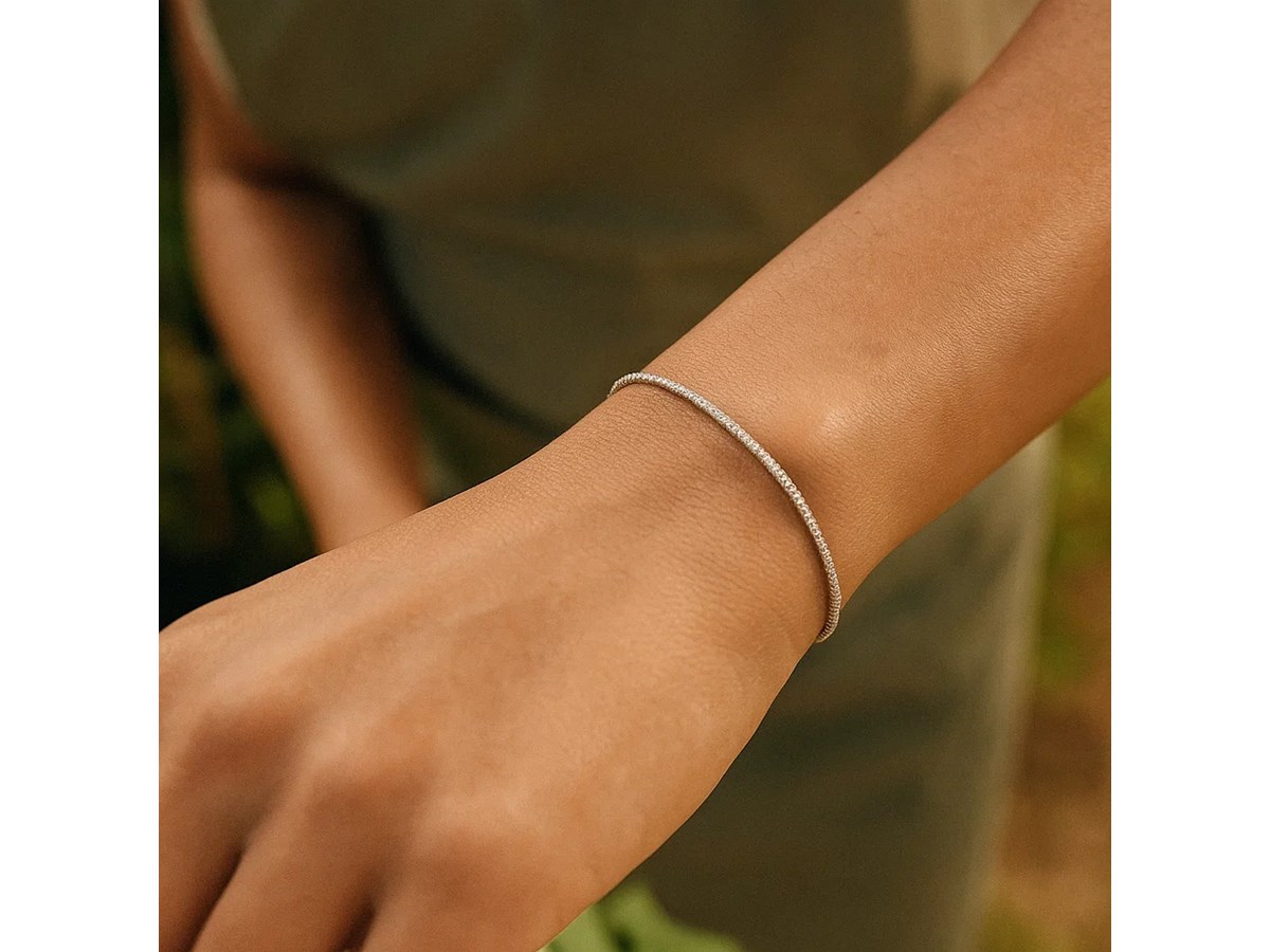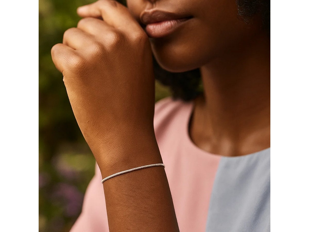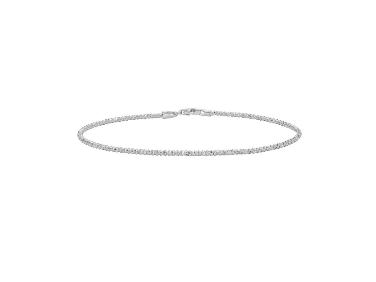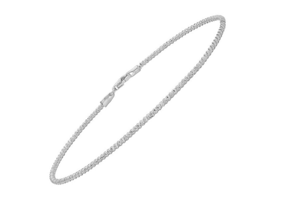 Crafted in sleek 14K white gold, this 1.70 mm diamond-cut sparkle spring bracelet features finely faceted links that catch the light with radiant brilliance. Its flexible, lightweight design offers effortless comfort and refined shine, making it a perfect piece for everyday elegance or layering with your favorite bracelets.