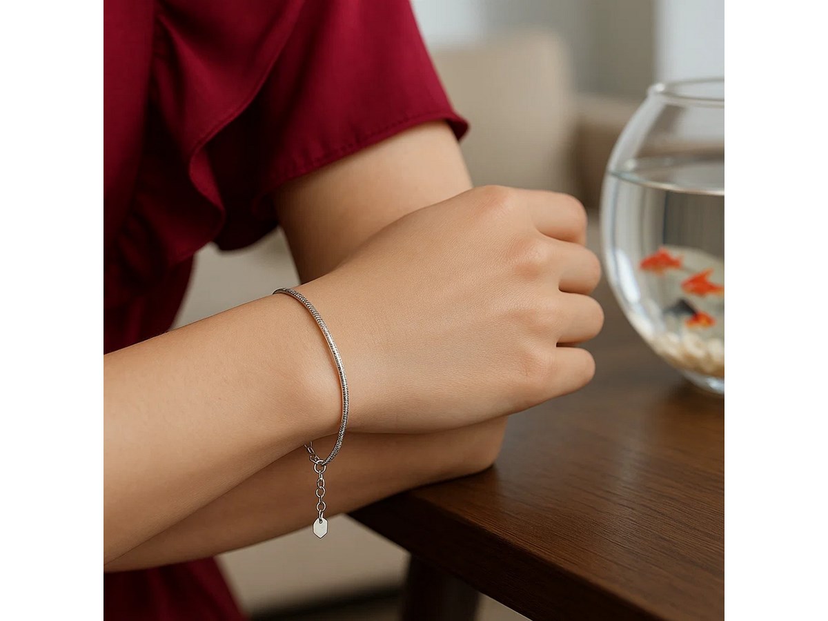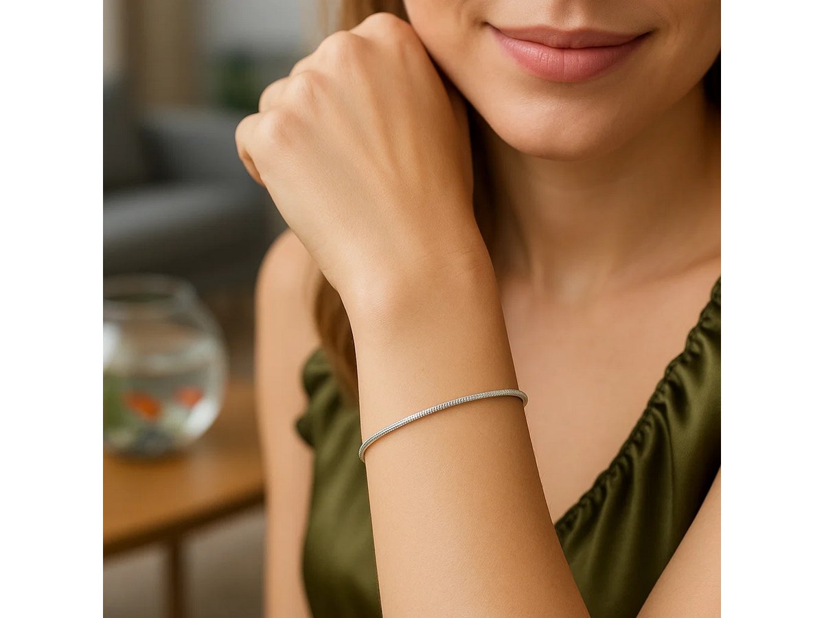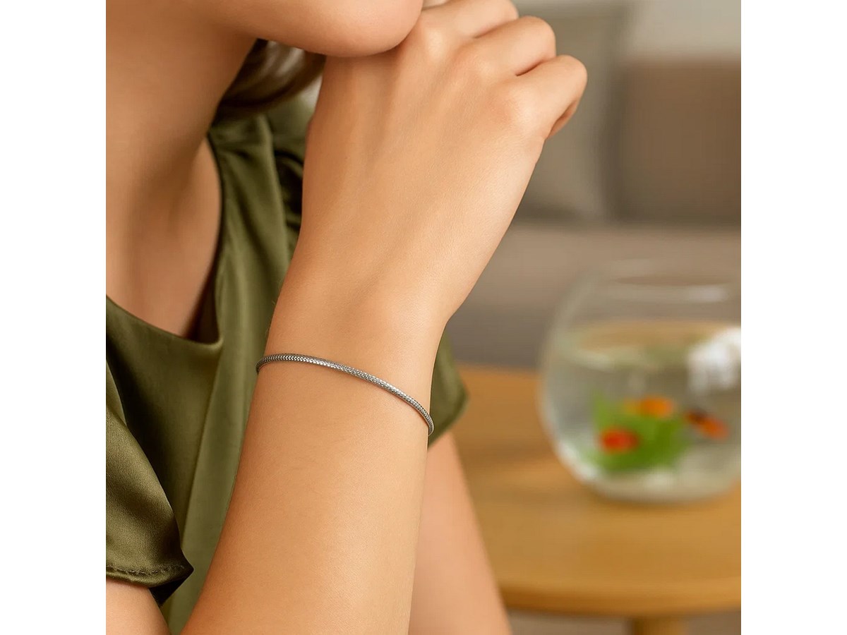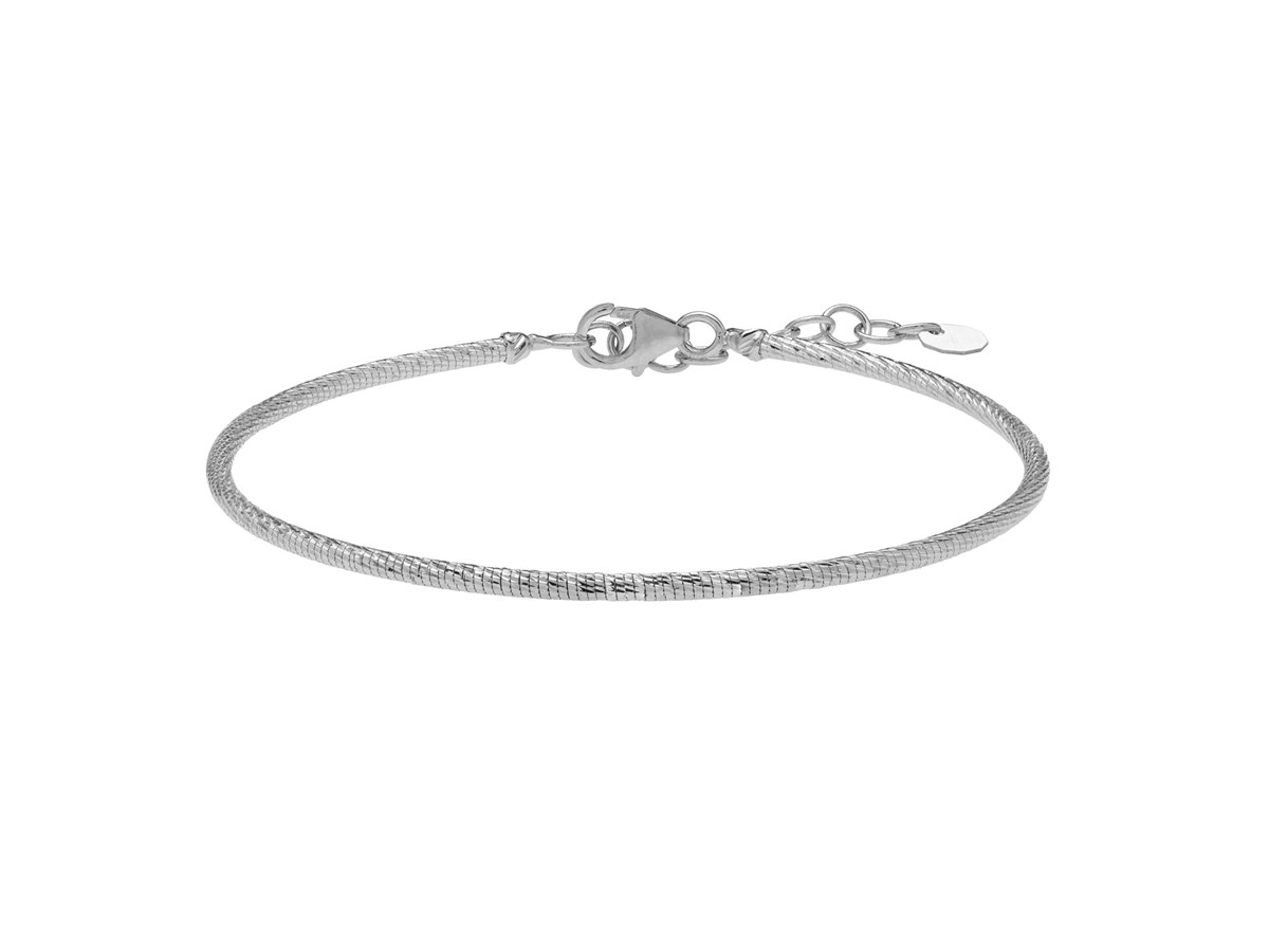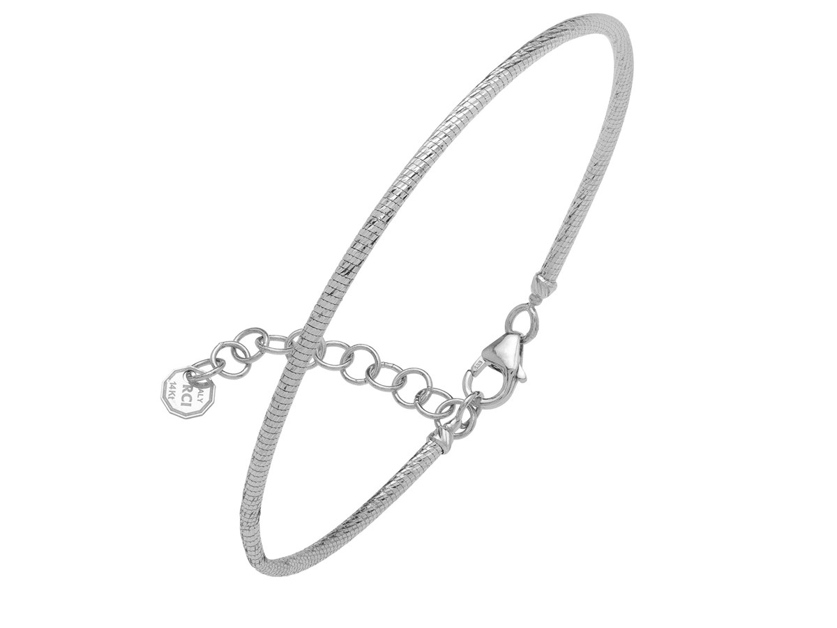 Crafted in 14K white gold, this elegant 7 inches diamond cut stack bangle bracelet adds brilliance and texture to any look. Designed with a pear shaped lobster clasp for secure wear, it’s perfect for stacking or as a standalone statement piece.