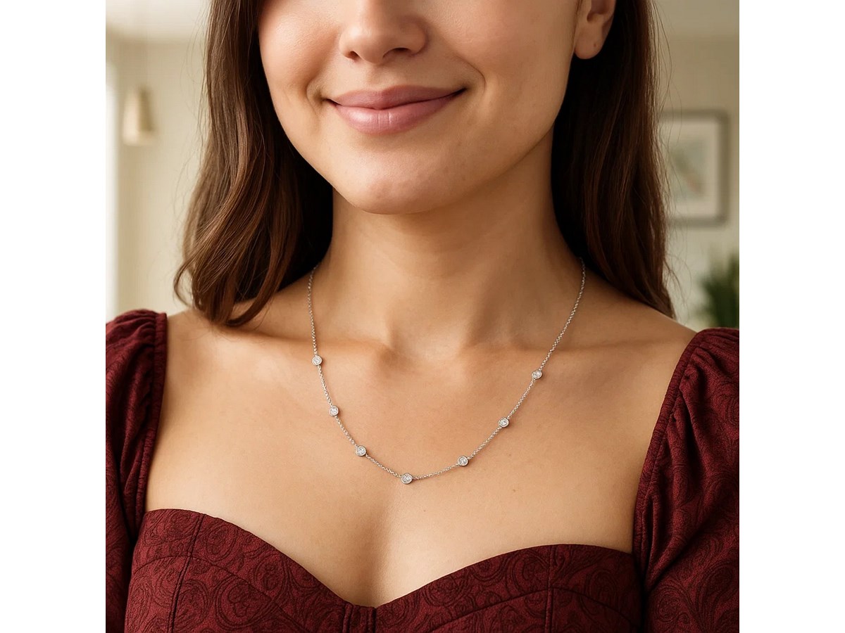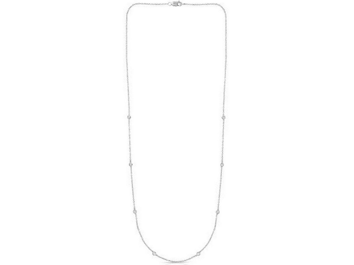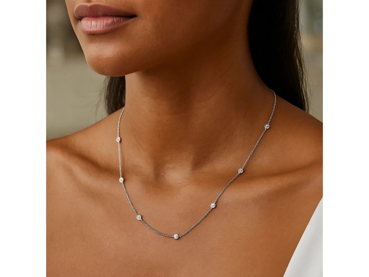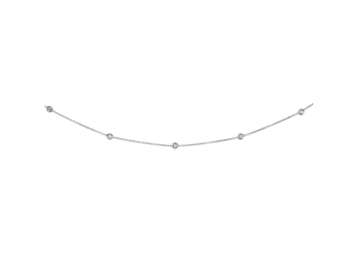 This 14K white gold Diamonds by the Yard necklace features bezel-set diamonds spaced along a delicate gold chain, creating a timeless, light-catching look. Elegant and versatile, it’s perfect for everyday wear, layering, or adding a touch of sparkle to any outfit.