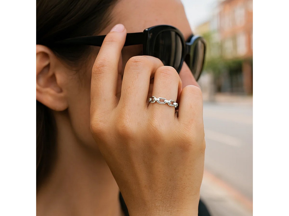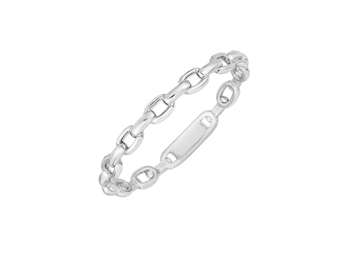 14K White Gold Oval Links Stackable Ring featuring polished oval link motifs crafted in solid 14K white gold. Its slim, contemporary design adds subtle texture and is perfect for stacking or wearing as a minimalist standalone piece.