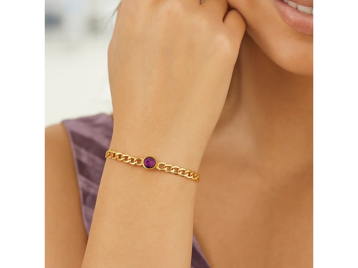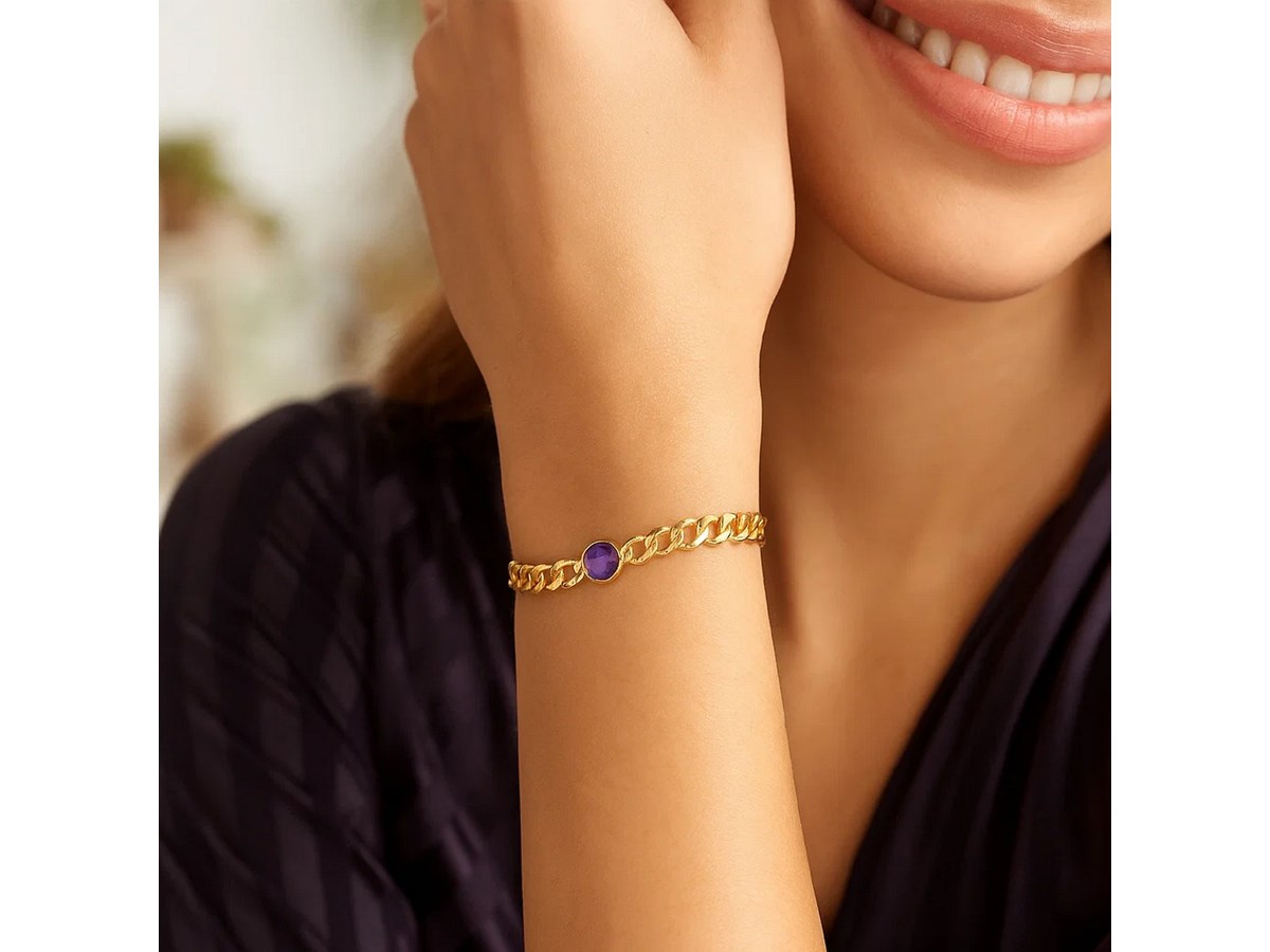 14K Yellow Gold Amethyst Curb Chain Bracelet (3.60 mm)