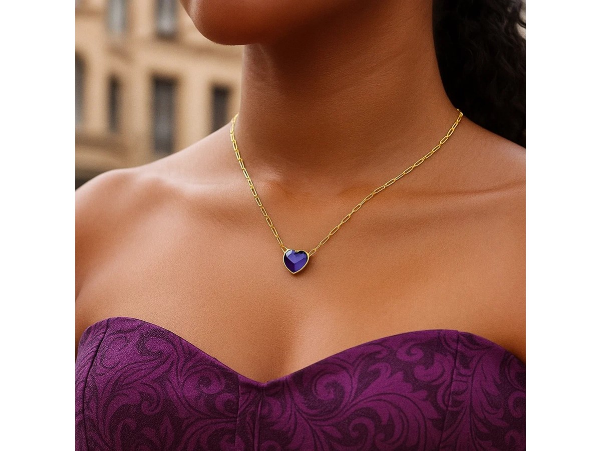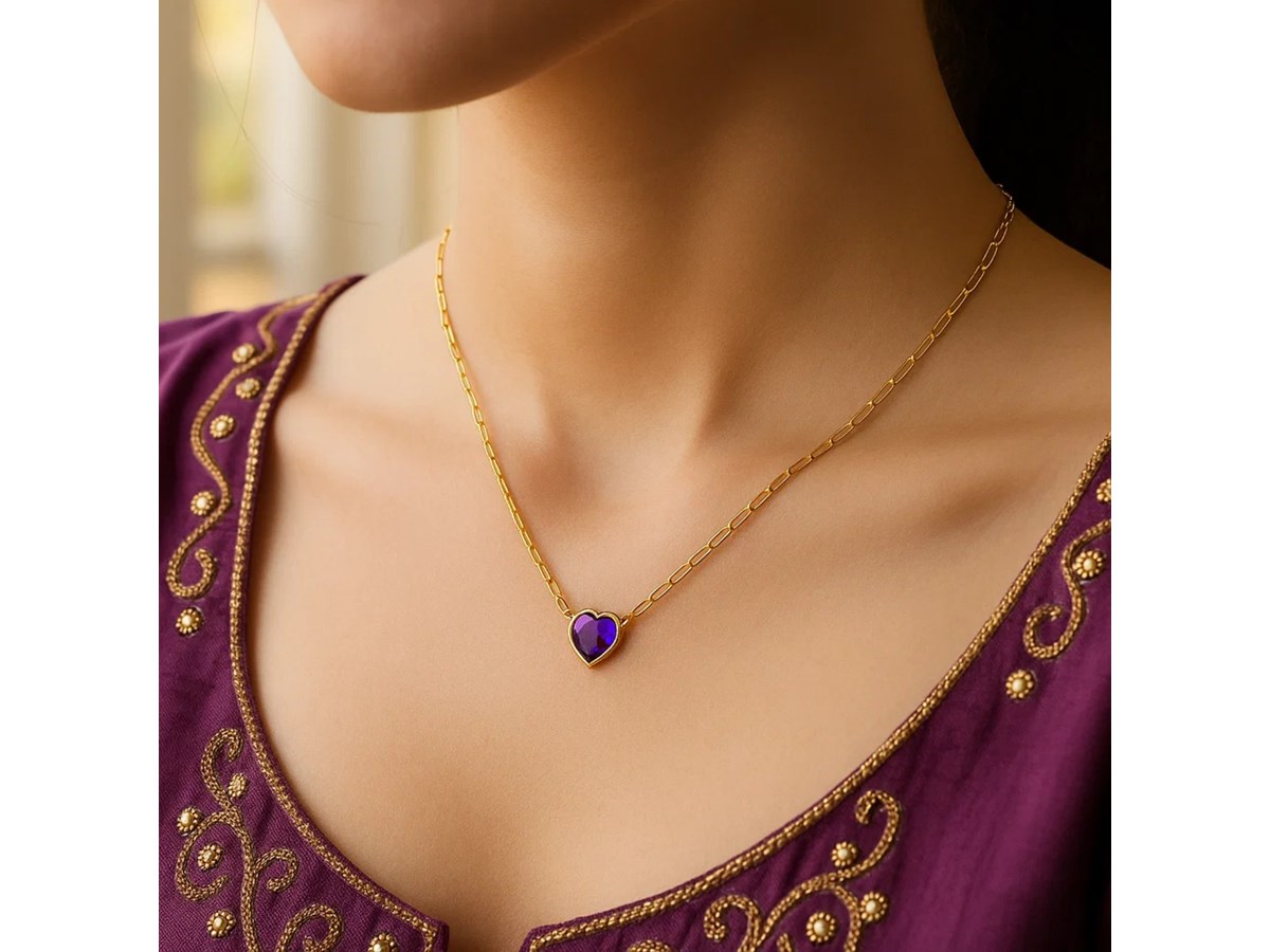 14K Yellow Gold Amethyst Heart Necklace (1.50 mm)