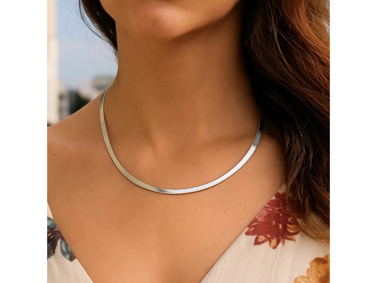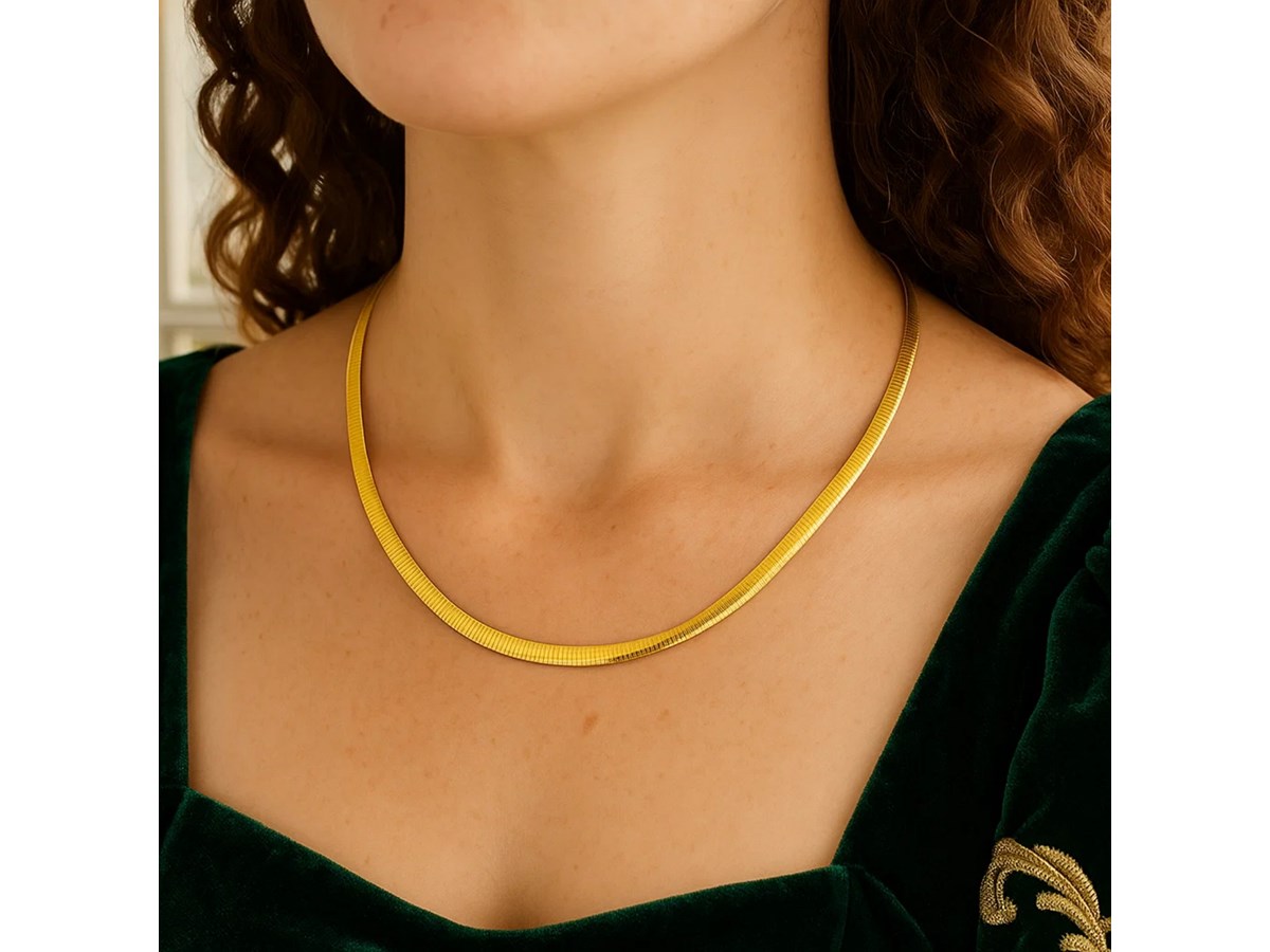 Elevate your style with this luxurious reversible Omega chain, crafted with a blend of 14K yellow gold and sterling silver for a striking two tone look. Designed with a lobster clasp for secure wear, this versatile necklace offers two elegant looks in one simply flip for a golden shine or a sleek silver finish. Available in 16 inches and 18 inches lengths, it sits beautifully at the neckline, perfect for both casual and formal occasions.