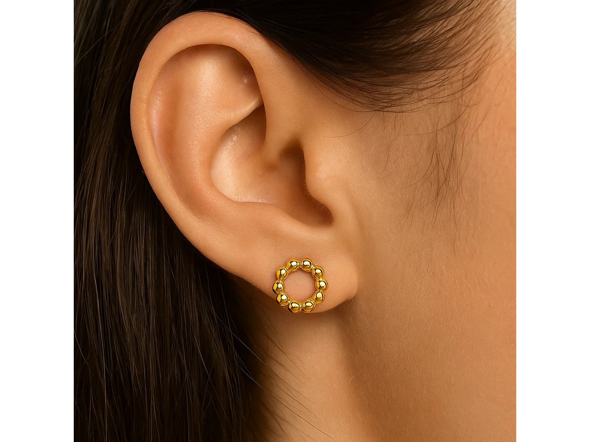 14K Yellow Gold Beaded Circle Earrings(6.8mm)