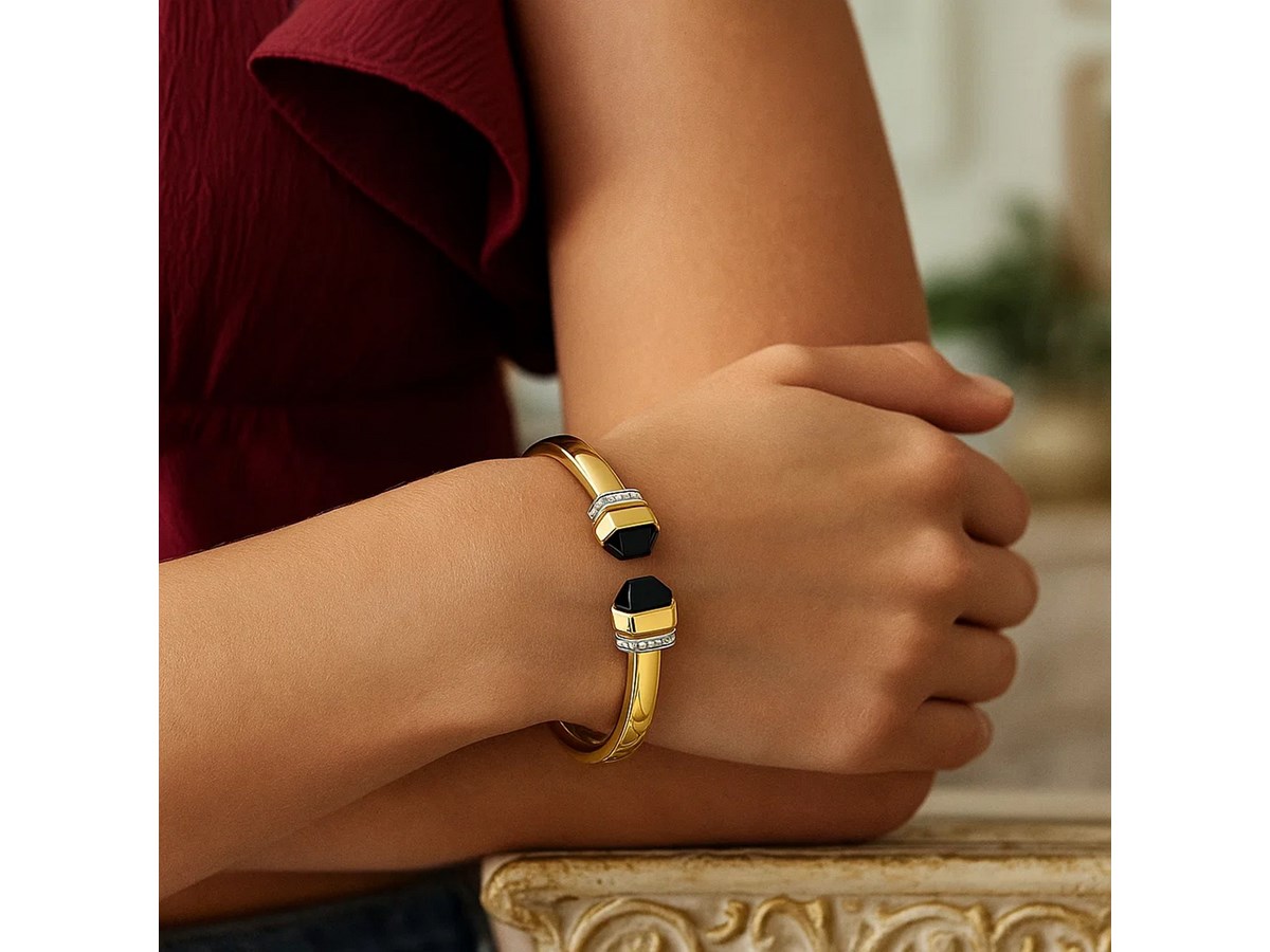 14K Yellow Gold Black Pyramid Art Deco Open Cuff Bangle (6.00 mm)