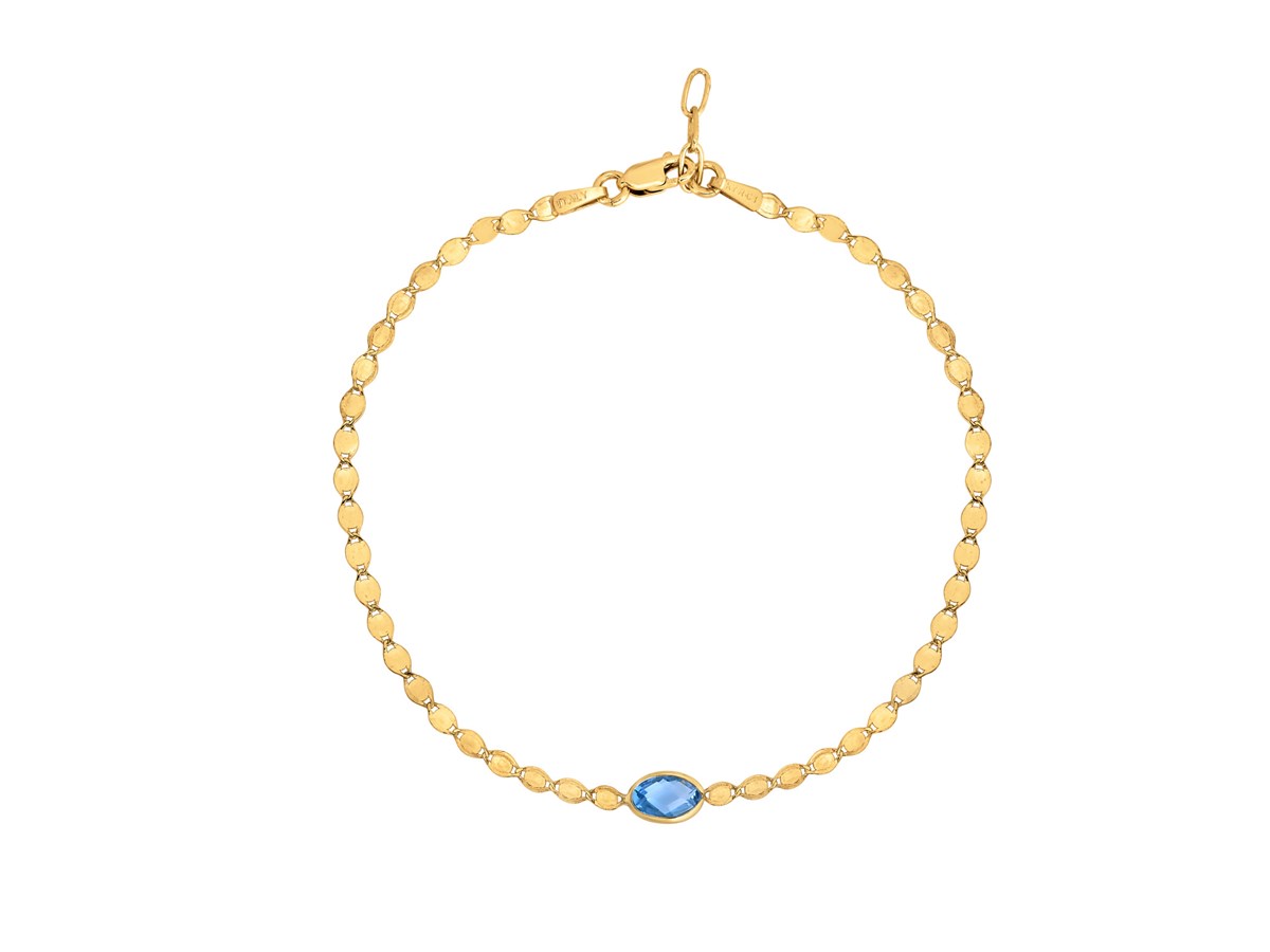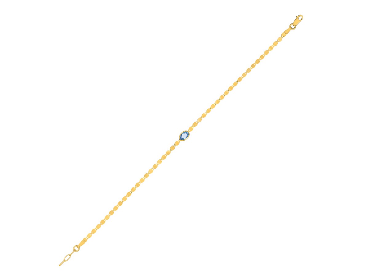 14K Yellow Gold Blue Topaz Mirrored Chain Bracelet (2.20 mm)