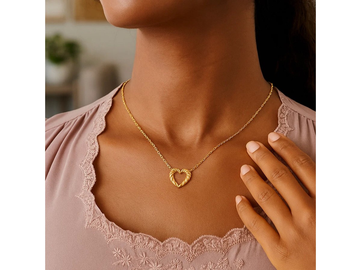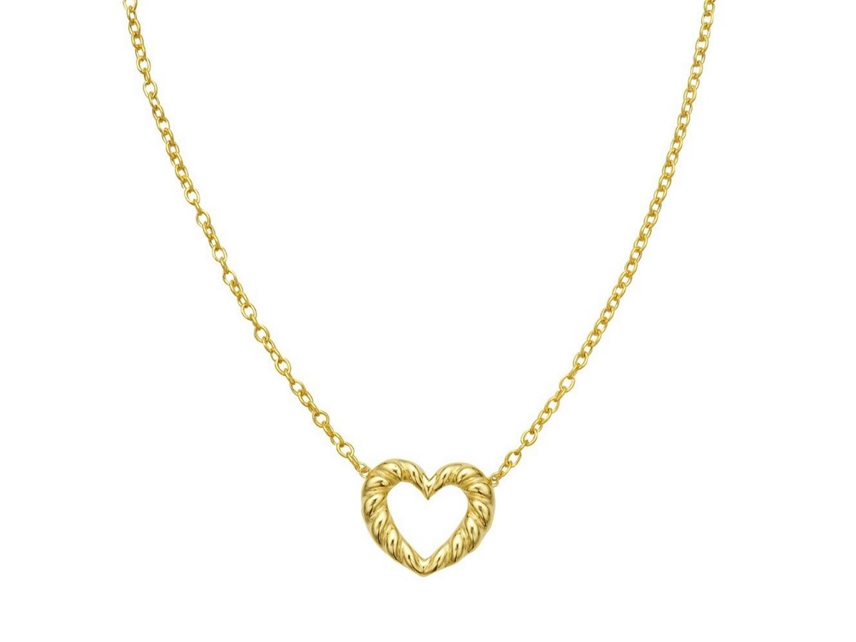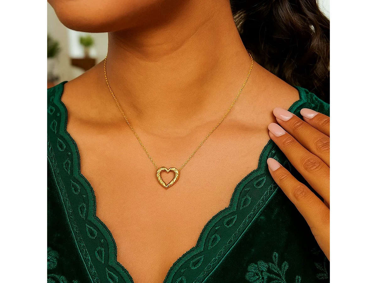 Express your love with our 14K Yellow Gold Braided Open Heart Necklace. This elegant piece features a polished open heart pendant with a unique braided design, symbolizing intertwined destinies. The pendant is gracefully suspended from an 18 inches chain, with an additional jump ring at 16 inches for versatile wear. Secured with a reliable lobster clasp, this necklace adds a touch of romance to any ensemble, making it an ideal gift for a loved one or a cherished addition to your jewelry collection.