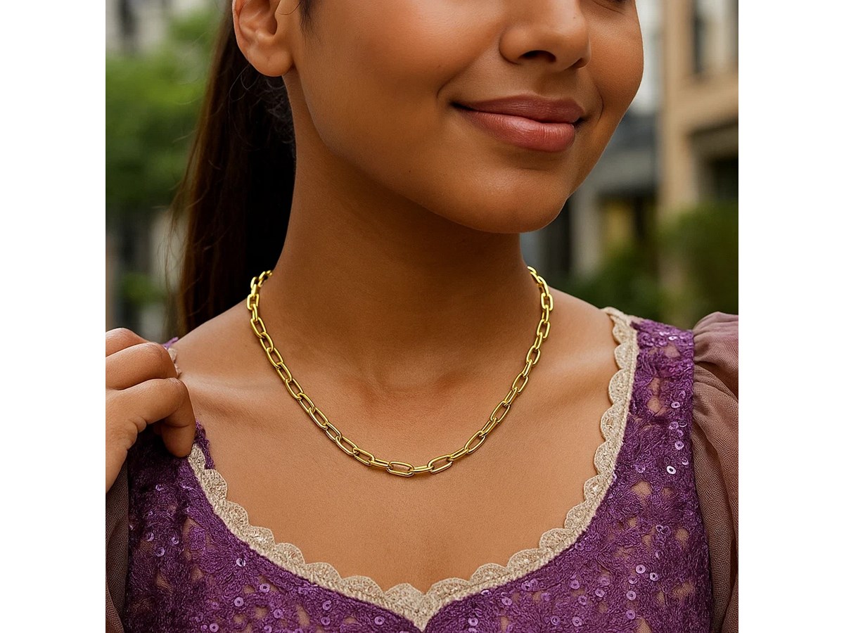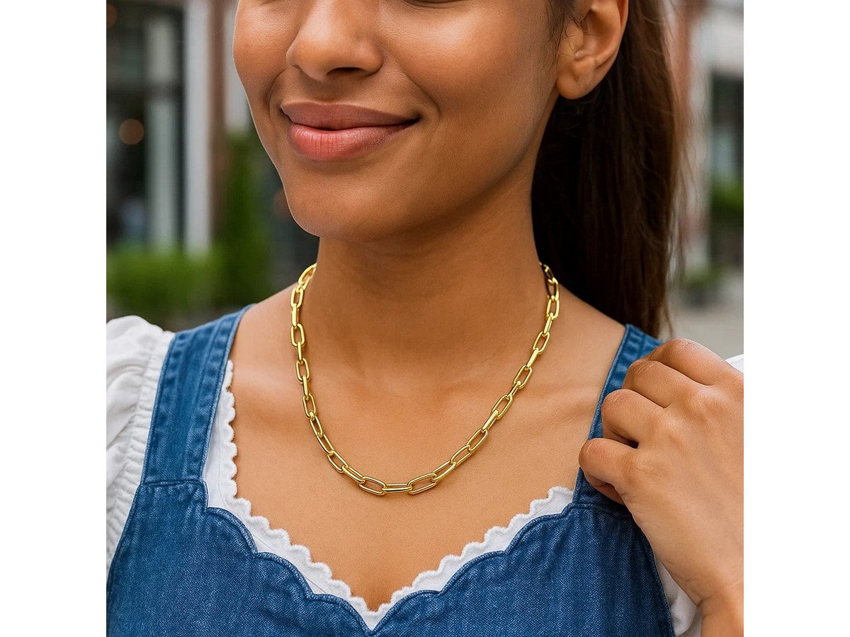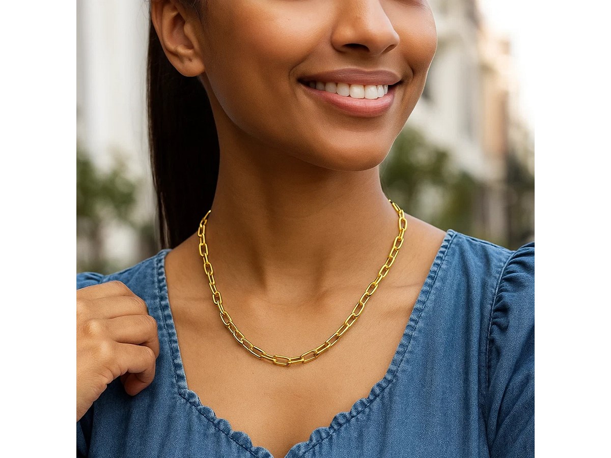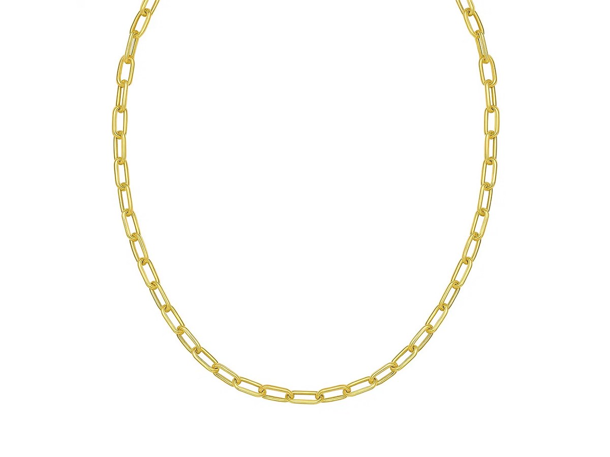 Elevate your jewelry collection with this 14K yellow gold paperclip chain, featuring an oversized lobster clasp designed for easy addition of charms. Available in 18 inches lengths, this polished chain offers versatility and elegance, making it a perfect foundation for personalized charm necklaces.