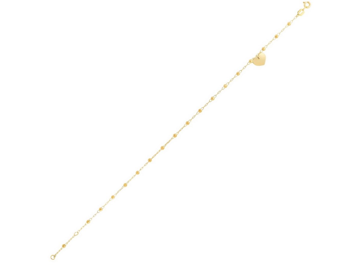 14K Yellow Gold Dangle Heart and Bead Station Anklet