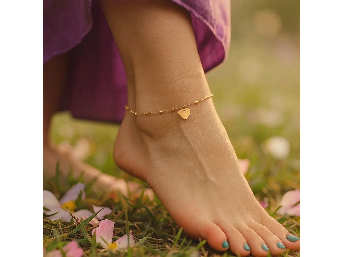 14K Yellow Gold Dangle Heart and Bead Station Anklet featuring delicate bead stations and a polished heart charm that adds playful movement. Crafted in solid 14K yellow gold, this anklet offers a sweet, feminine look perfect for everyday wear or layering.