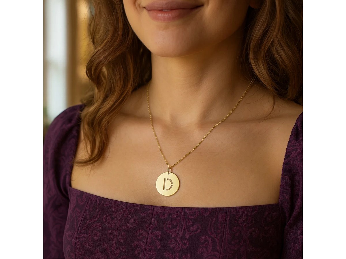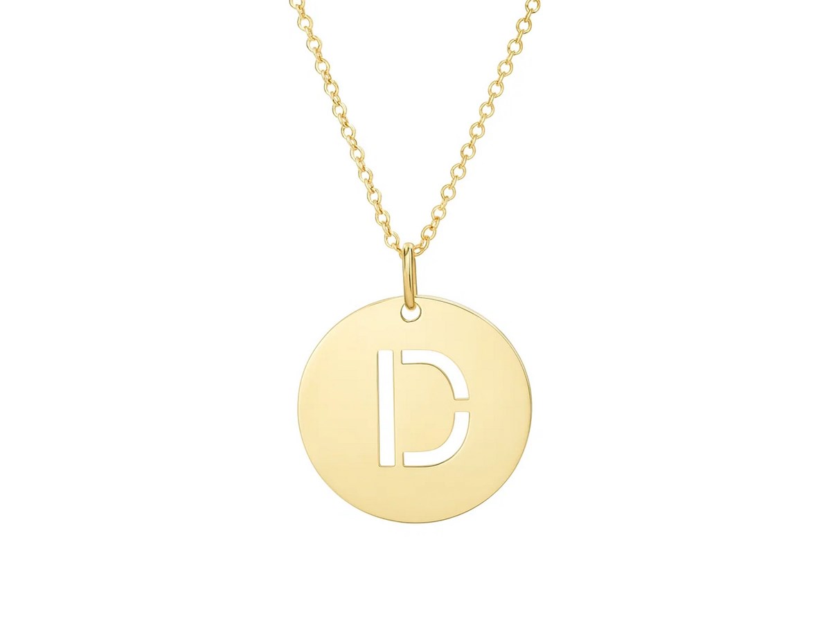 Radiant in 14K yellow gold, this sleek disc pendant showcases a finely engraved Initial “D” for a touch of personal elegance. Its minimalist, polished design makes it perfect for daily wear, meaningful gifting, or layered styling. Timeless, refined, and effortlessly chic.