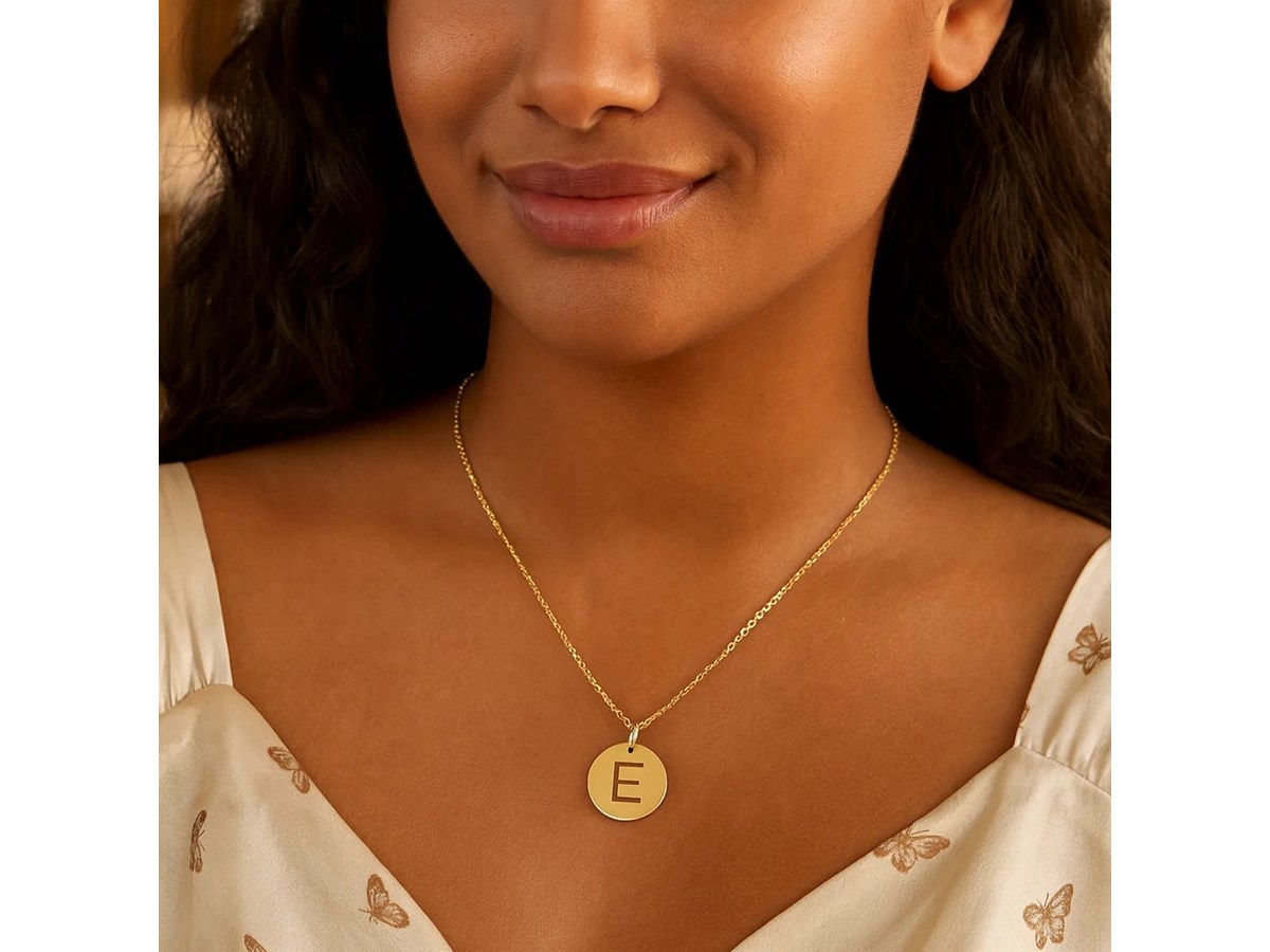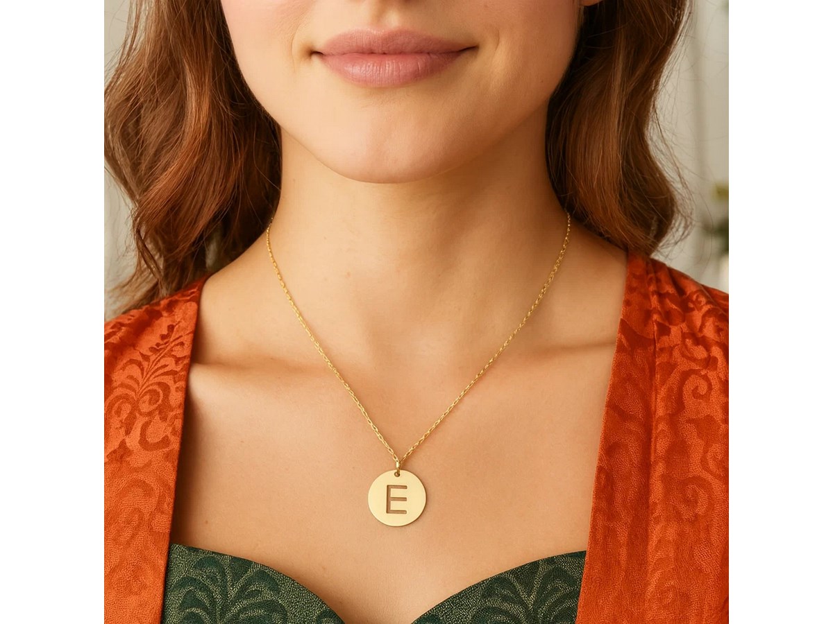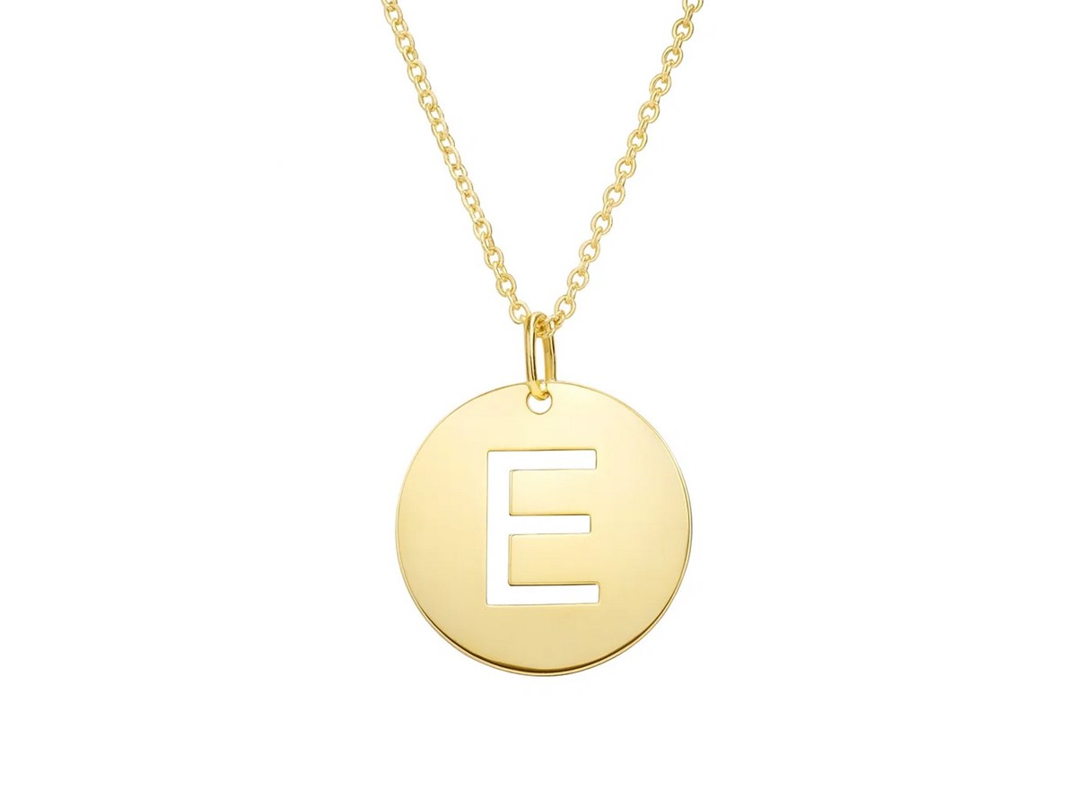 Crafted in glowing 14K yellow gold, this polished disc pendant features a beautifully engraved Initial “E,” adding a touch of personal charm and timeless style. Its minimalist design makes it perfect for everyday wear, thoughtful gifting, or effortless layering. Simple, meaningful, and forever chic.