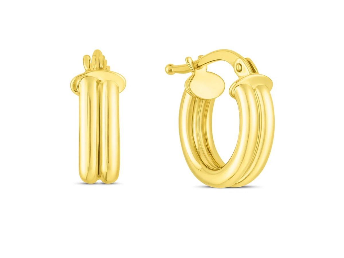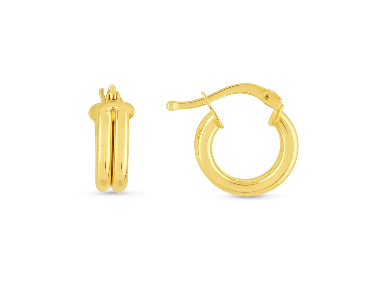 14K Yellow Gold Double Row Round Hoop Earrings (8.00 mm)