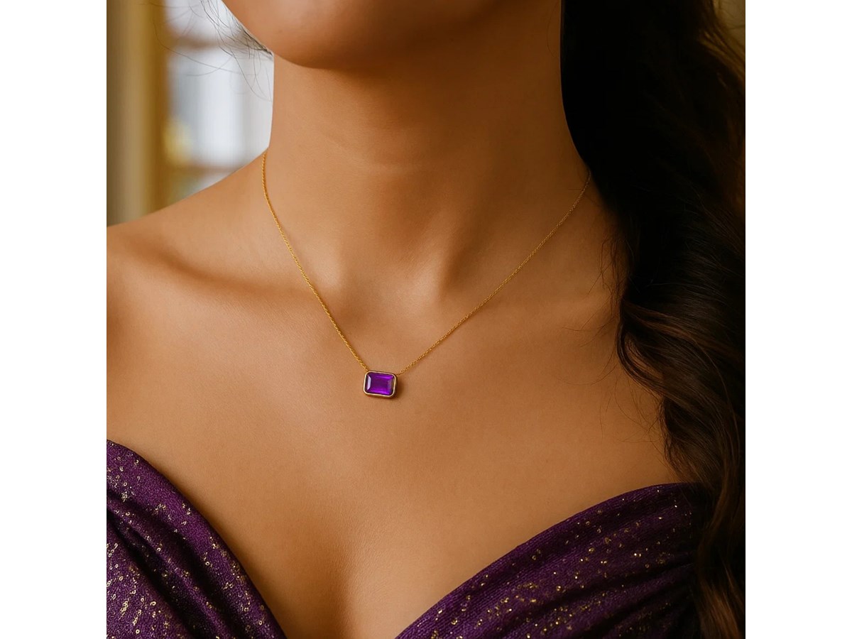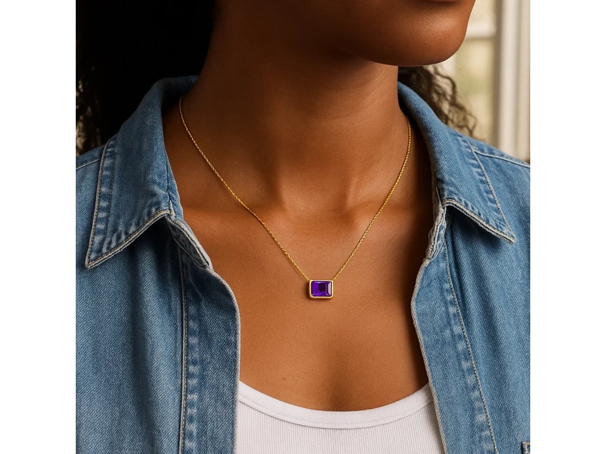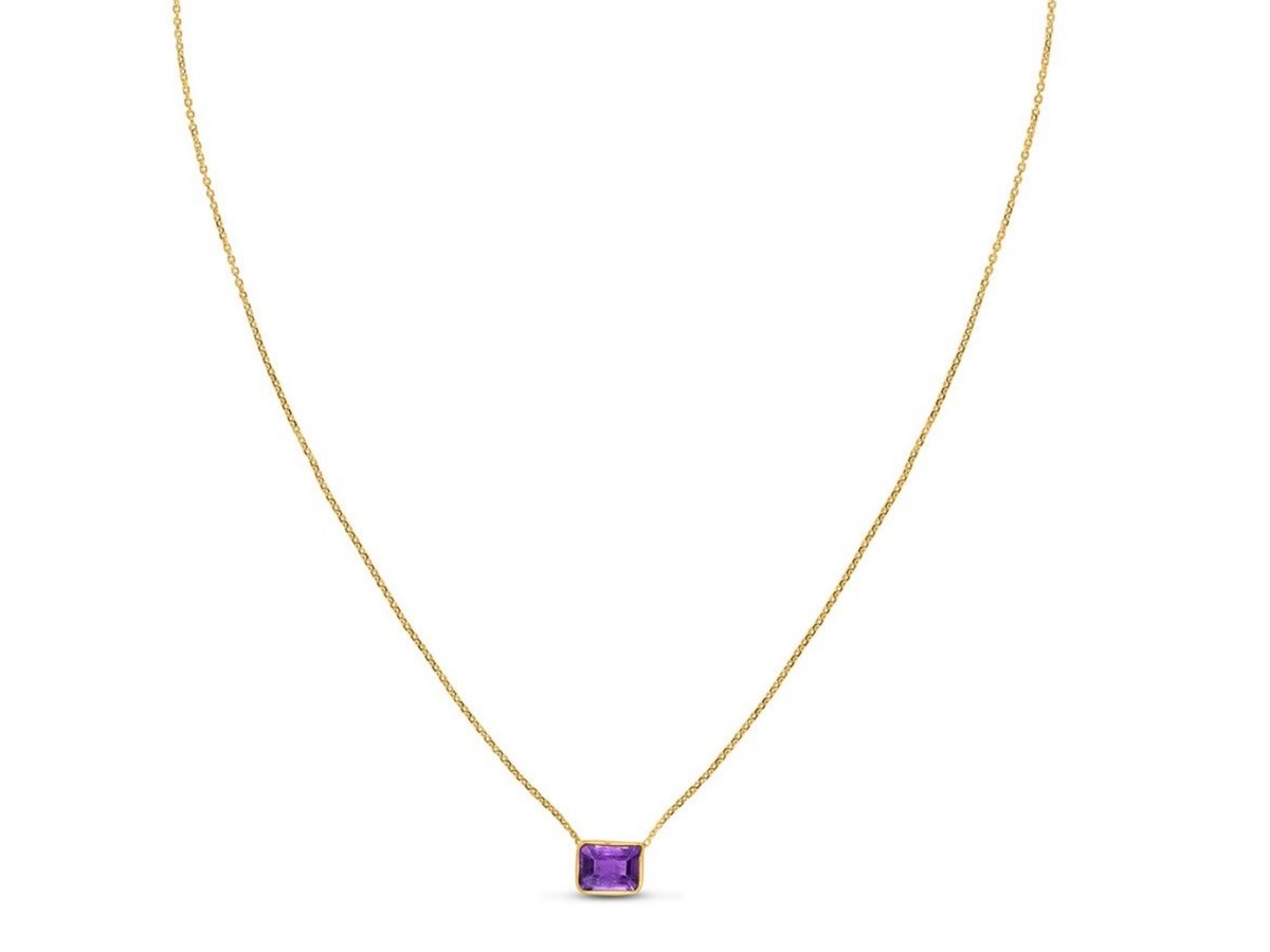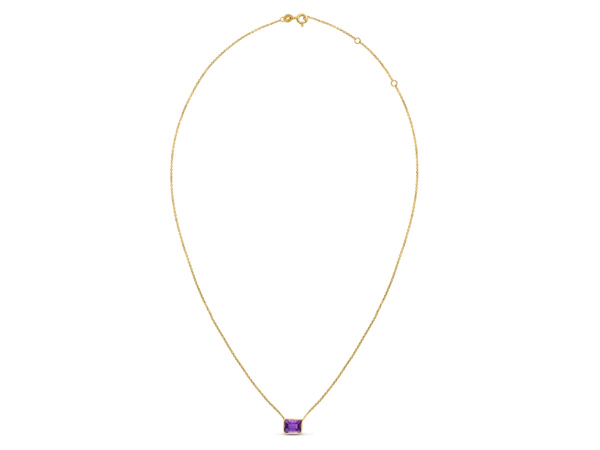14K Yellow Gold Emerald Cut Amethyst Necklace