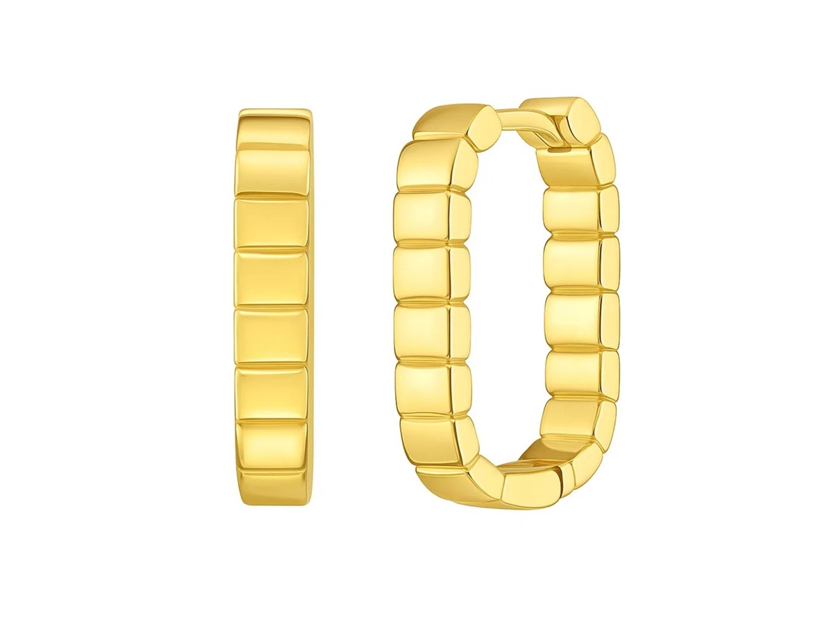 14K Yellow Gold Fancy Oval Hoop Earrings