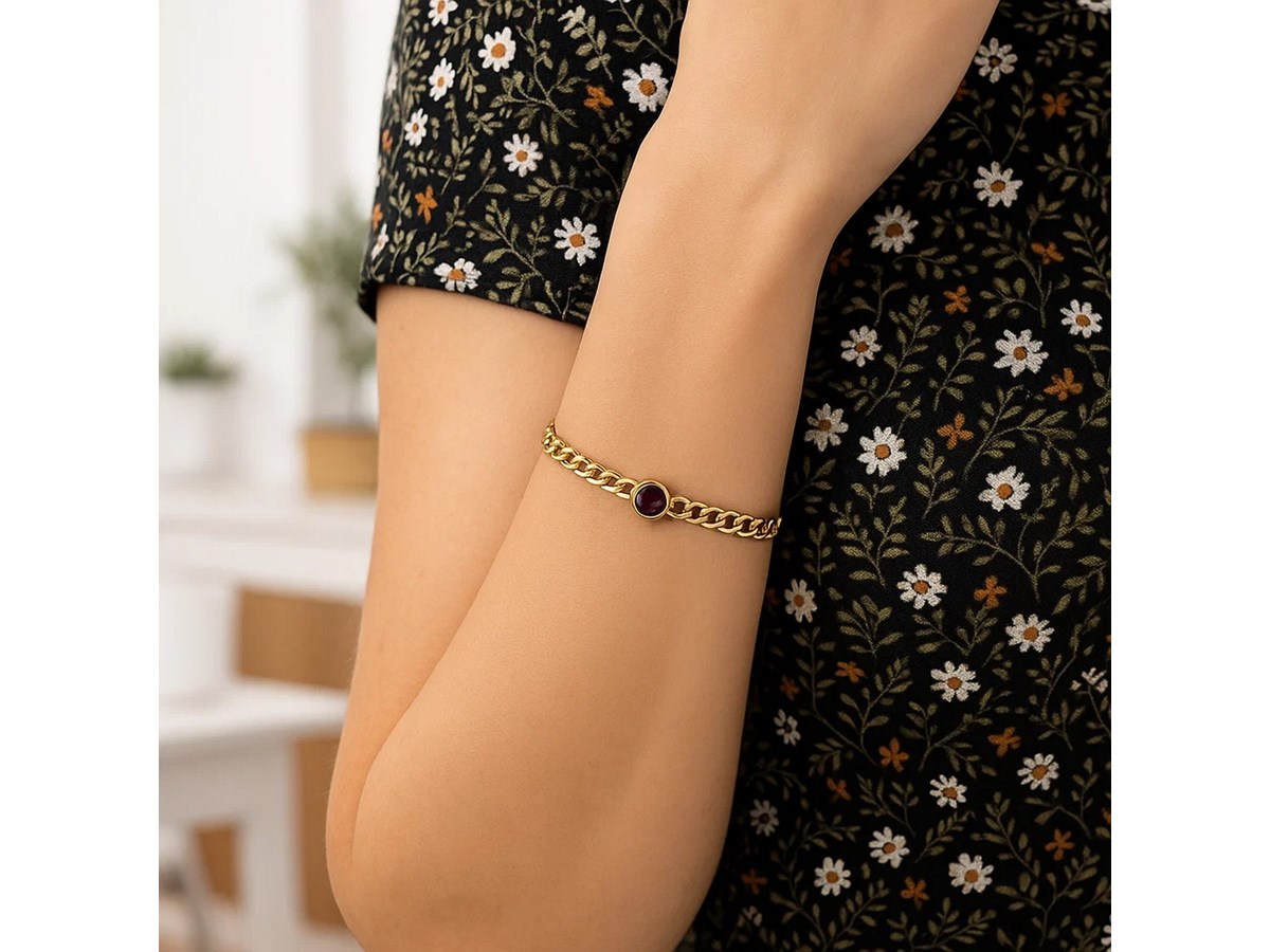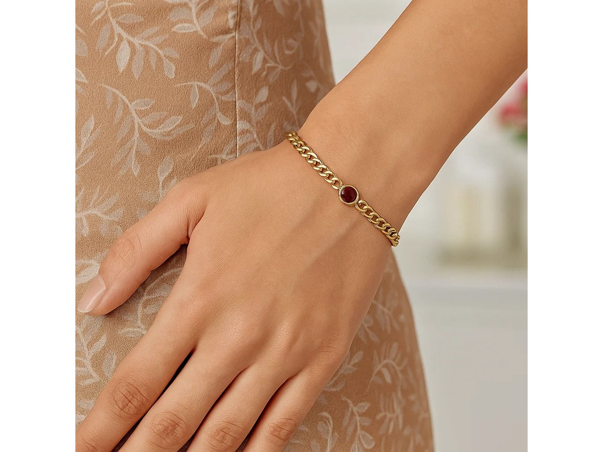 14K Yellow Gold Garnet Curb Chain Bracelet (3.60 mm)