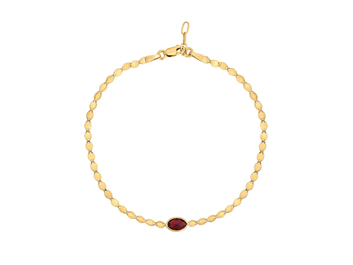 14K Yellow Gold Garnet Mirrored Chain Bracelet (2.20 mm)