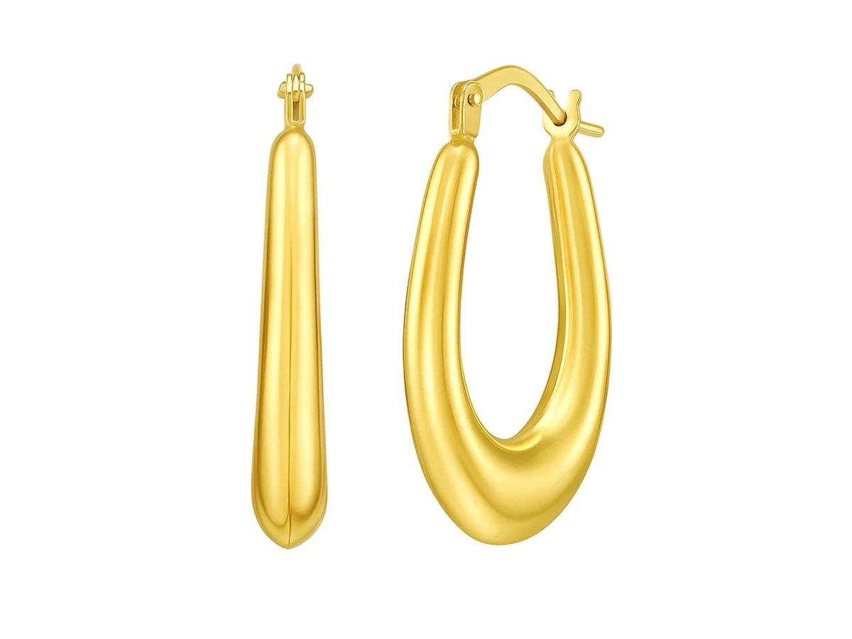 14K Yellow Gold Graduated Oval Hoop Earrings