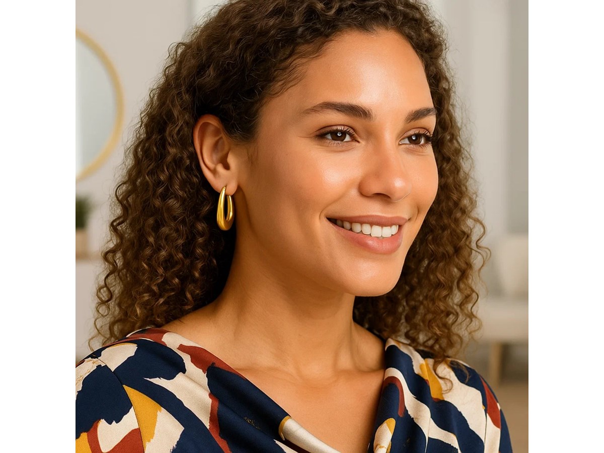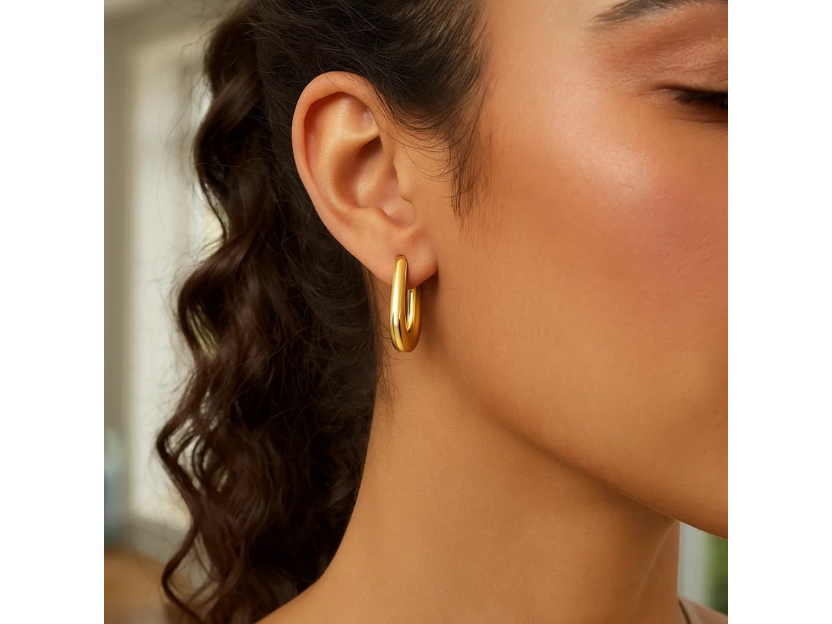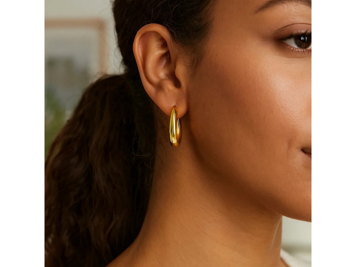 Elegant 14K yellow gold graduated oval hoop earrings featuring a polished finish and smoothly tapered design. The graceful oval silhouette and subtle size graduation add dimension and sophistication, perfect for enhancing both everyday and formal looks.
