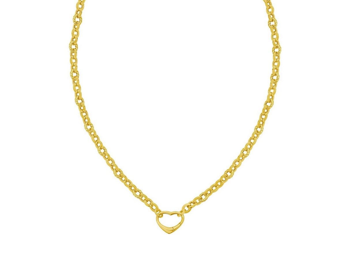 Express your love with this 14K yellow gold heart lock charm necklace. The 18 inches chain features a polished heart-shaped clasp that opens to allow the addition of personal charms, making it a versatile and meaningful accessory. Perfect for gifting or as a cherished piece in your own collection, this necklace combines elegance with personalization.