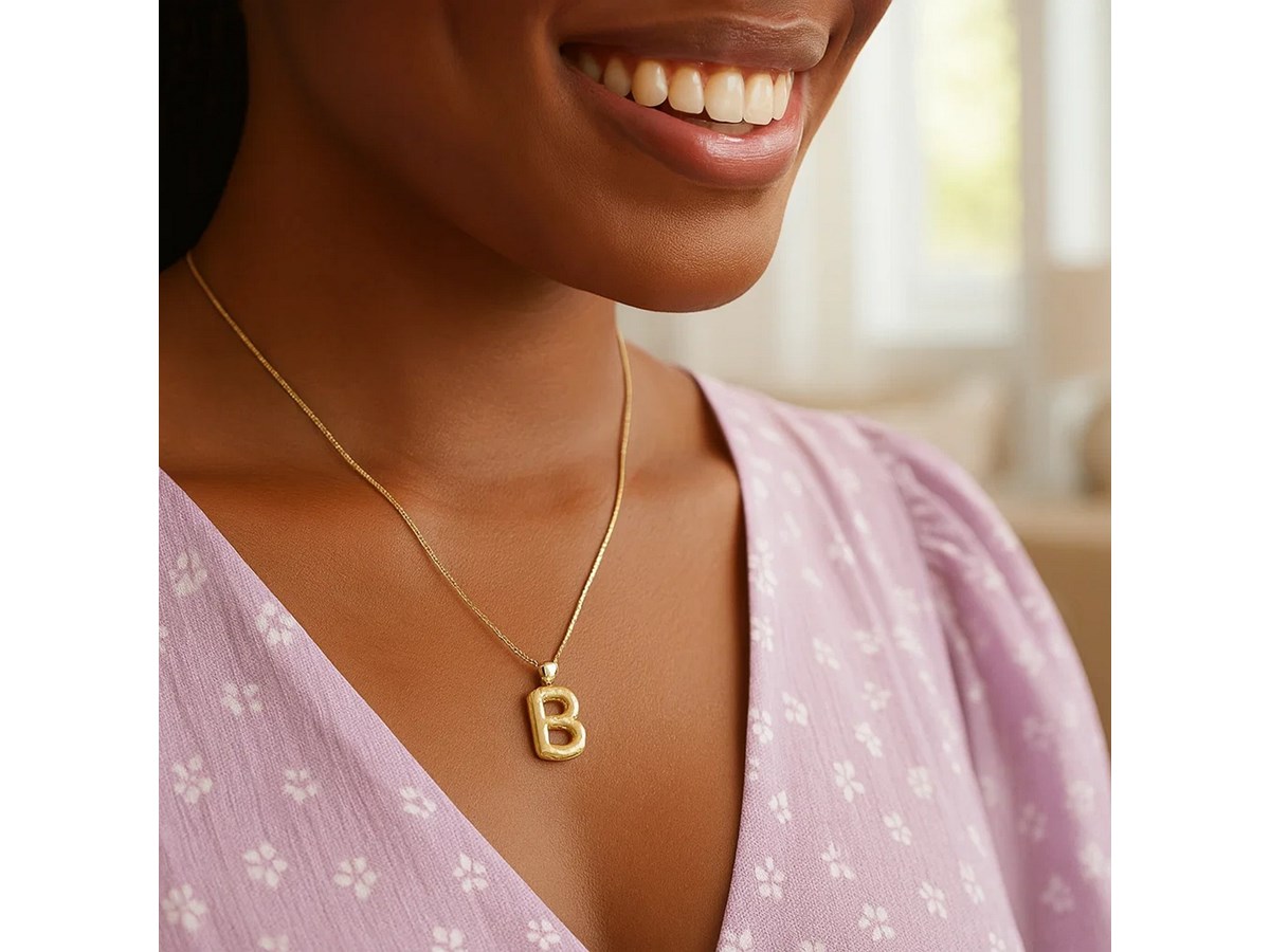 A sleek 14K yellow gold initial B pendant crafted with a lightweight, modern design. Perfect for everyday wear or layering, it adds a subtle personalized touch to any jewelry collection.