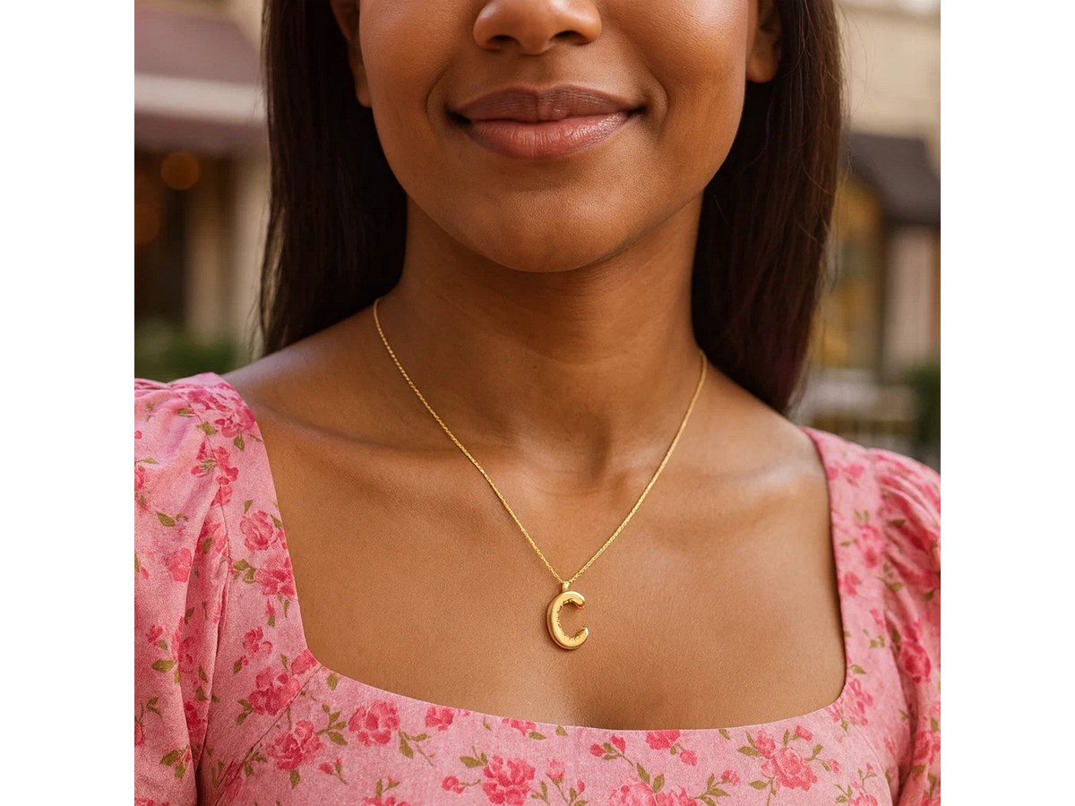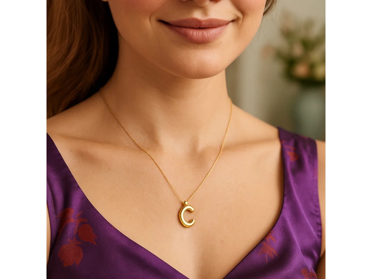 A lightweight 14K yellow gold initial C pendant with a modern, airy design. Perfect for everyday wear or layering, it adds a simple and personal touch to any jewelry collection.