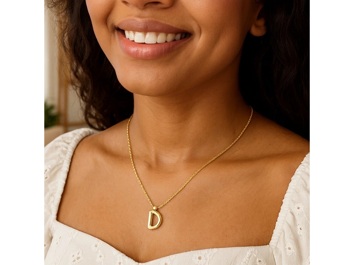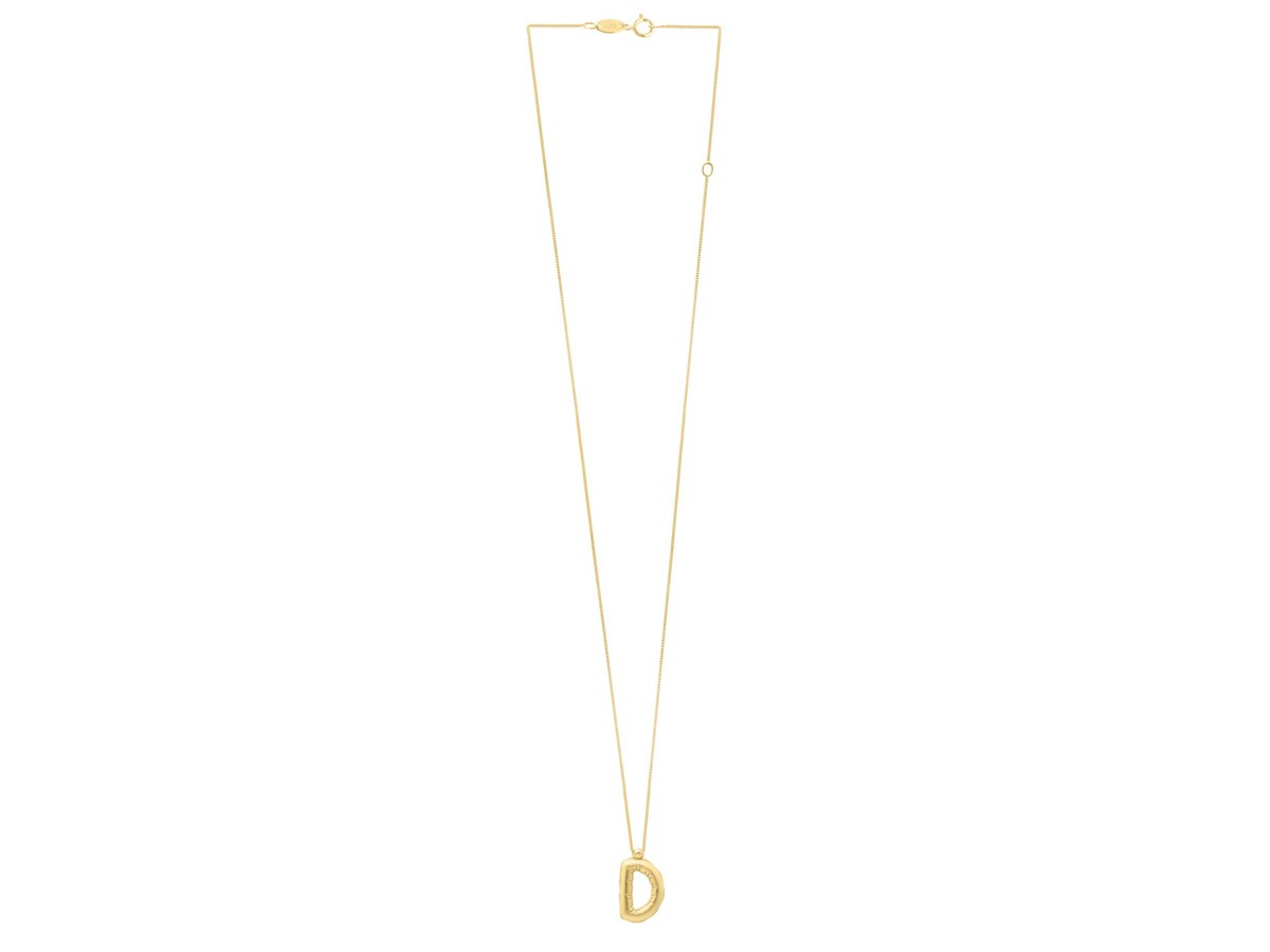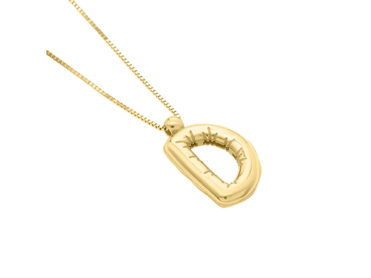 A lightweight 14K yellow gold initial D pendant with a modern, airy design. Perfect for everyday wear or layering, it adds a simple and personal touch to any jewelry collection.