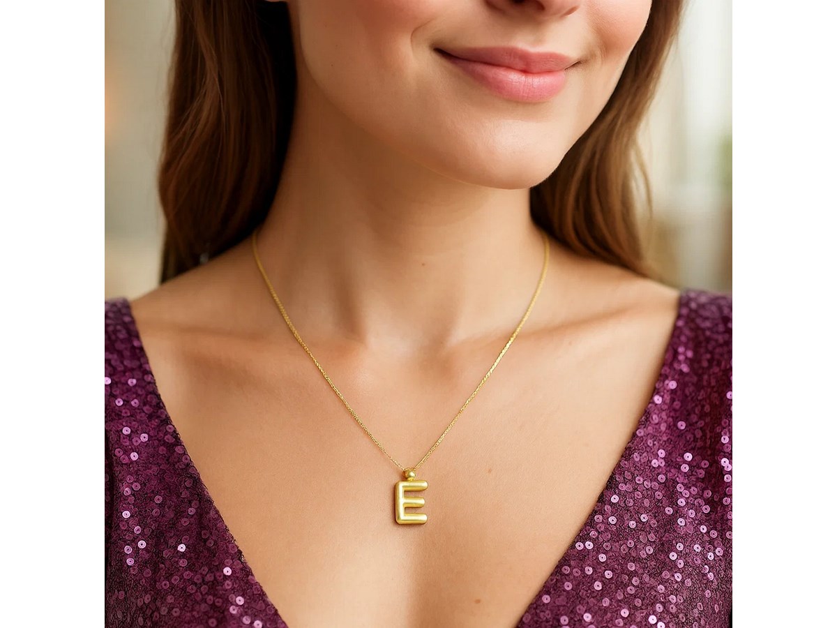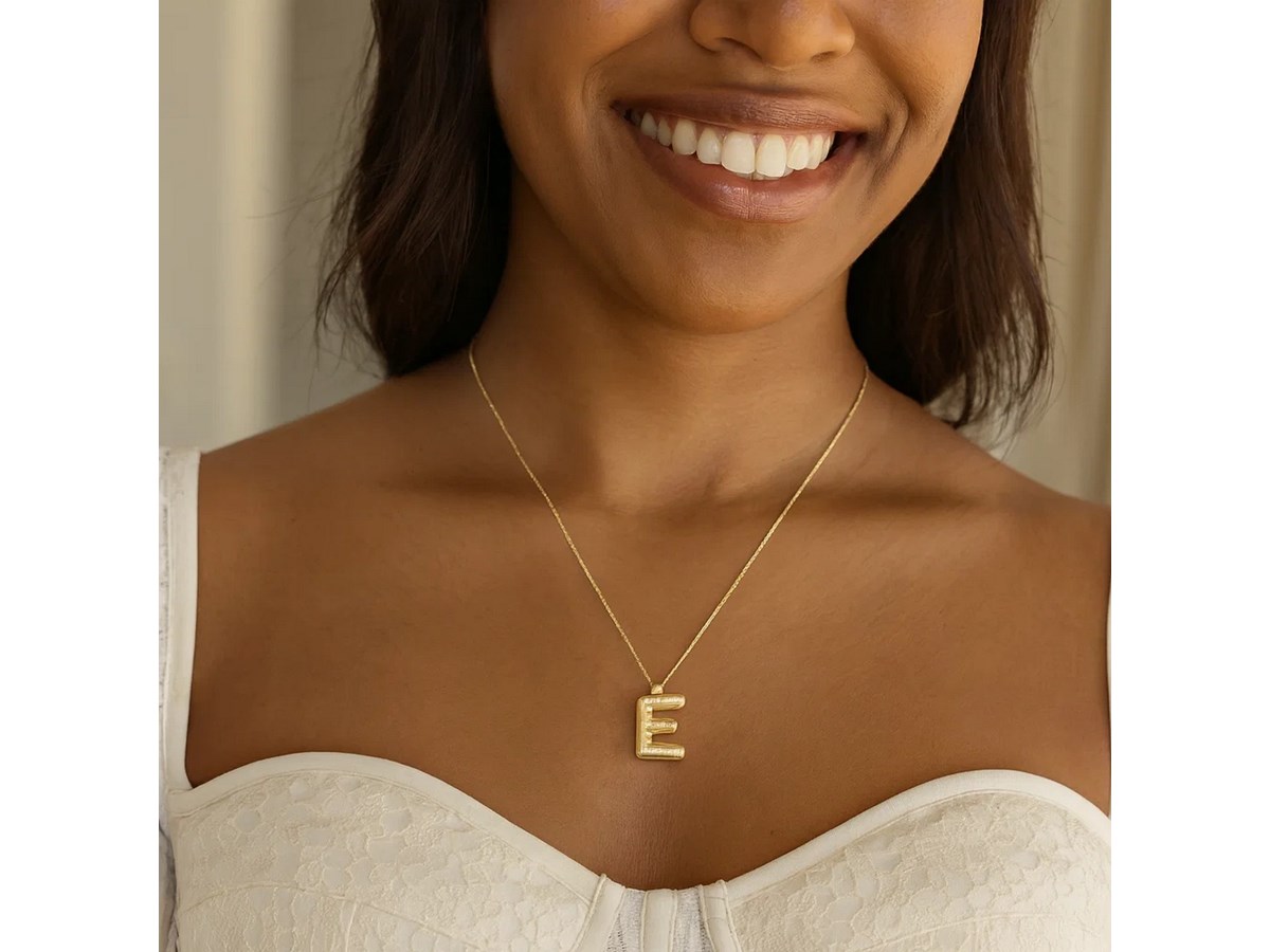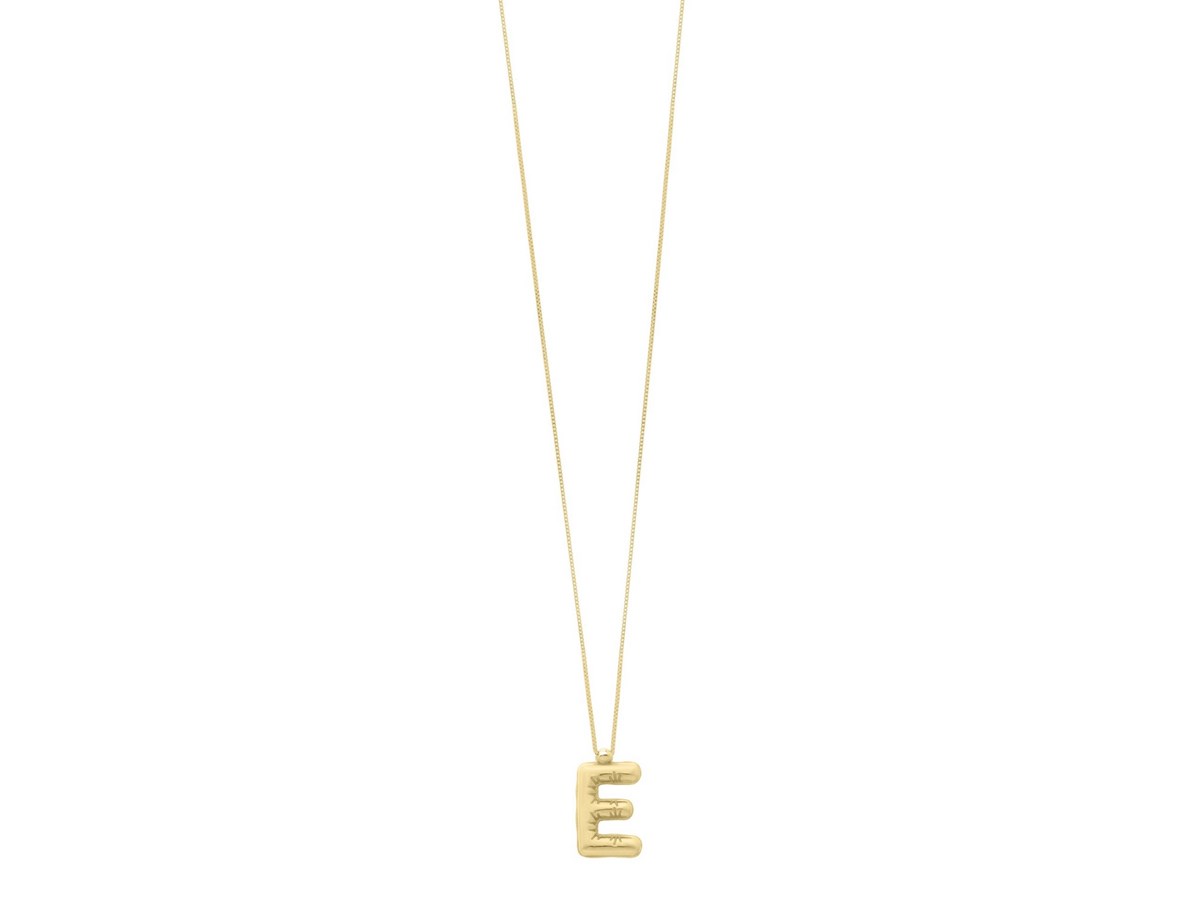 A lightweight 14K yellow gold initial E pendant with a sleek, airy design. Ideal for everyday wear or layering, it offers a simple and personal touch to any jewelry collection.