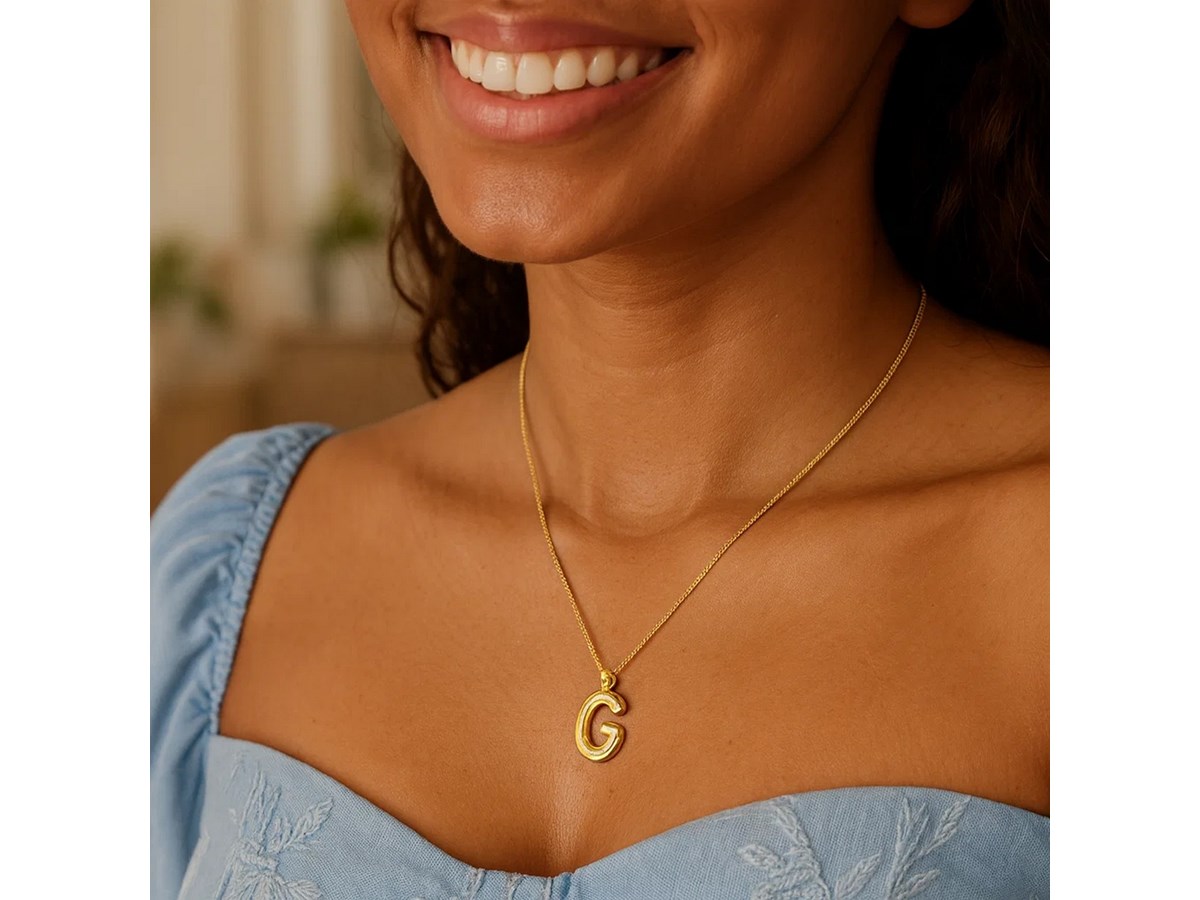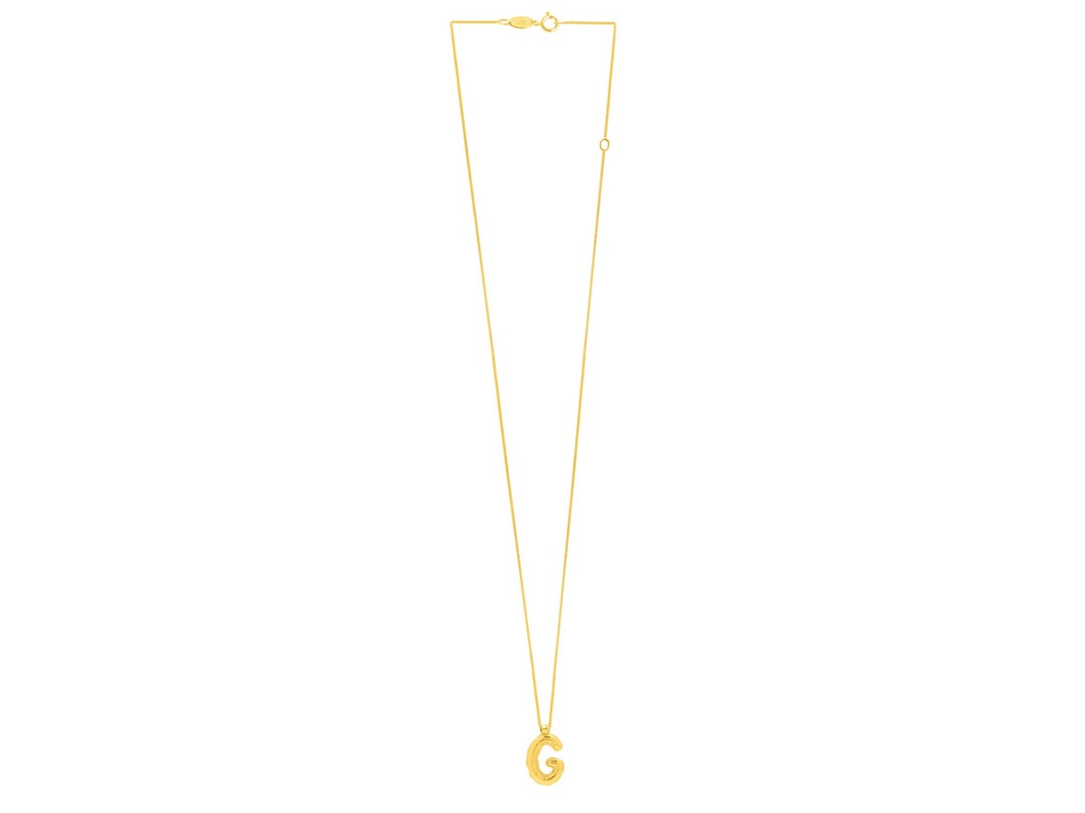 A lightweight 14K yellow gold initial G pendant with a sleek, airy design. Perfect for everyday wear or layering, it adds a simple and personalized touch to any jewelry collection.