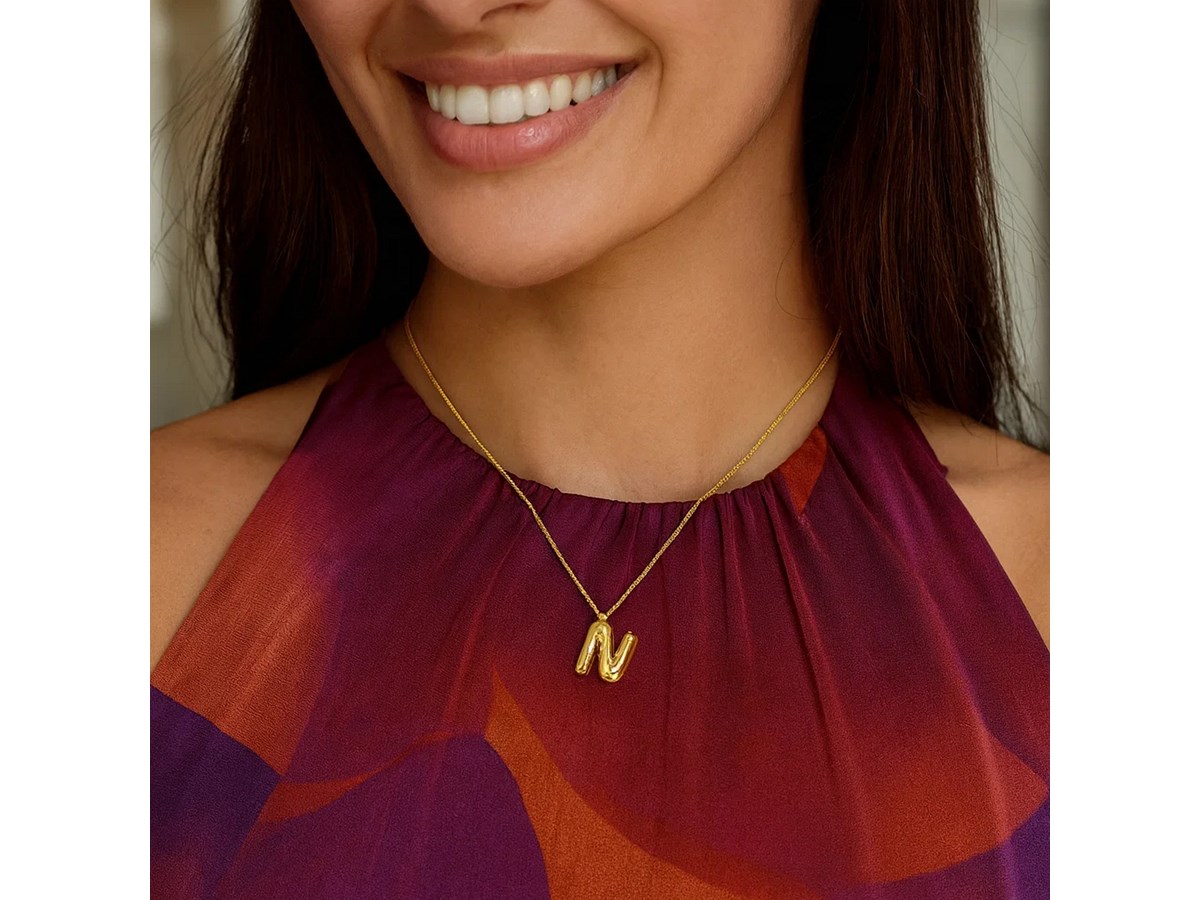 Crafted in 14K yellow gold, this Helium Initial N pendant offers a bright, minimalist look. Its light, open design makes it an effortless everyday piece with a personal touch.