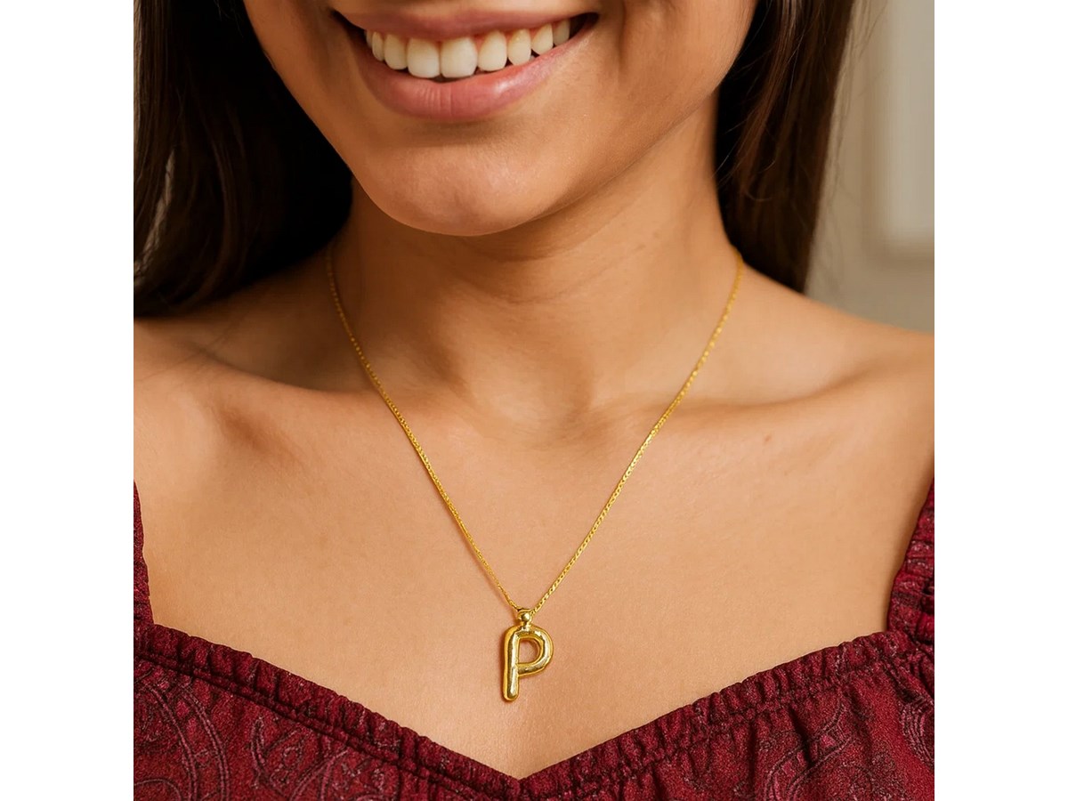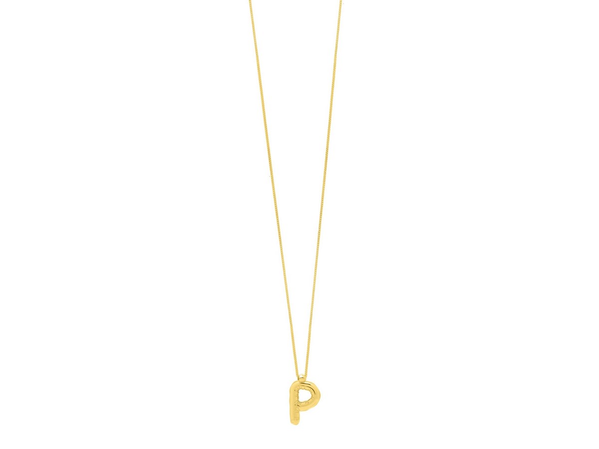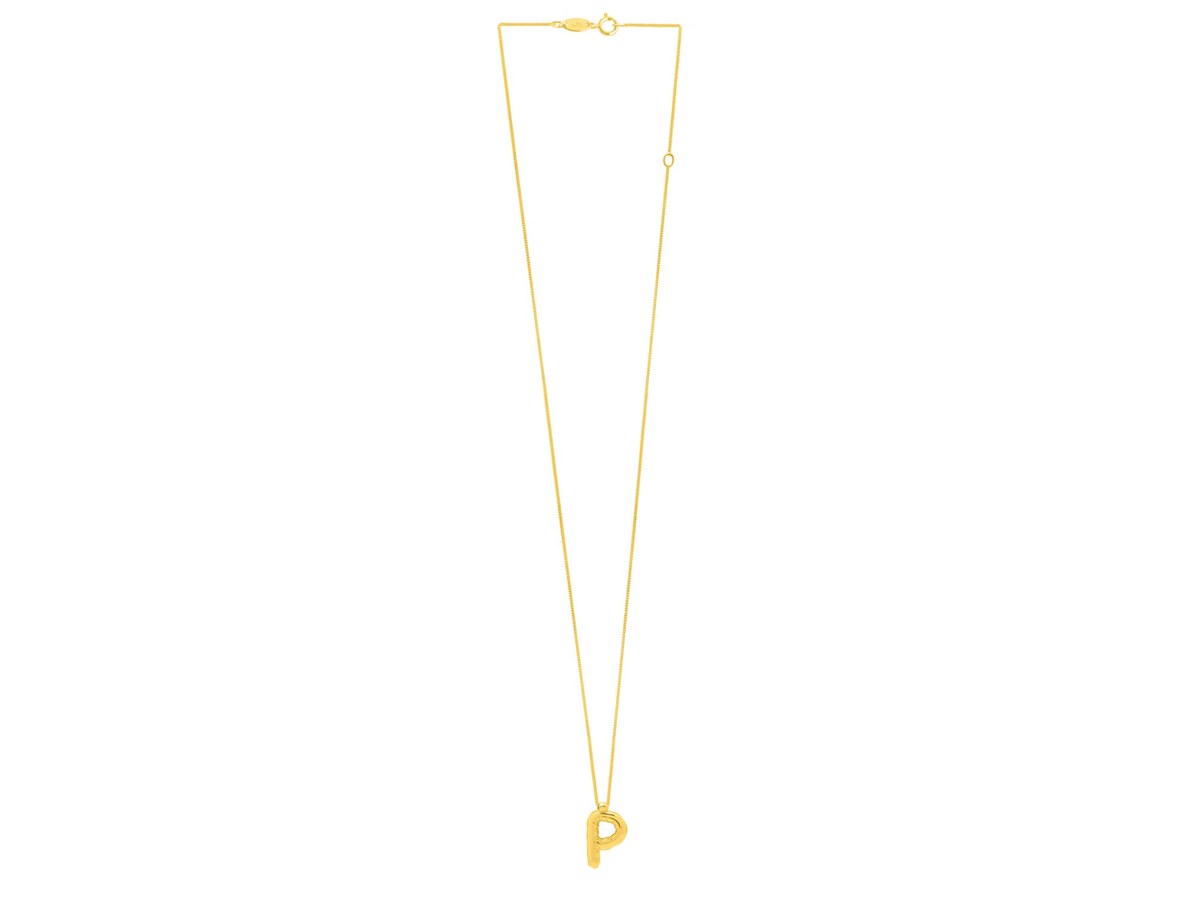 This 14K yellow gold Helium Initial P Pendant features a clean, airy silhouette that feels both modern and effortless. Its lightweight design makes it ideal for everyday wear, adding a refined, personal touch whether worn alone or layered with your favorite chains.