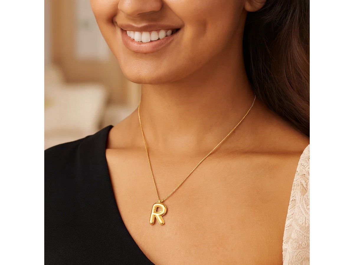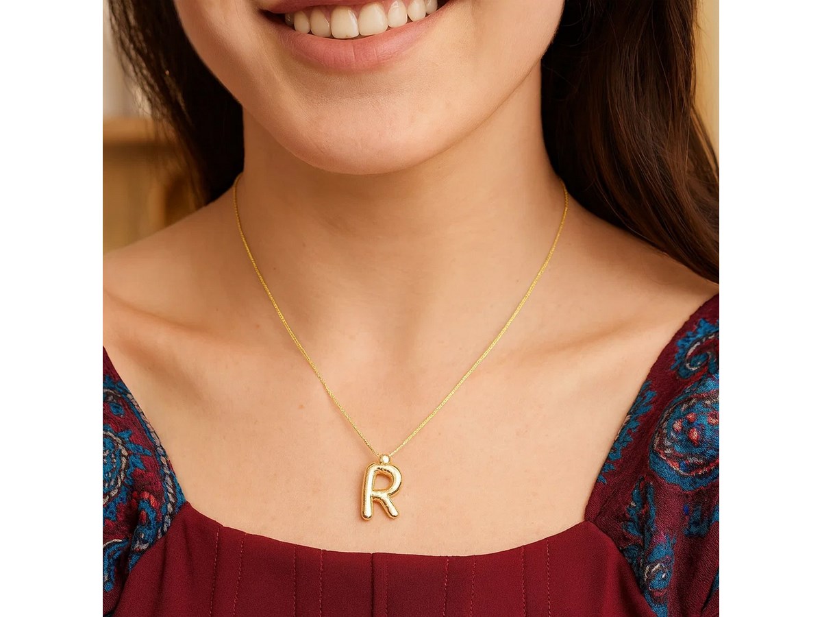 Crafted in 14K yellow gold, the Helium Initial R Pendant features a sleek, lightweight design that brings a subtle personalized touch to any look. Perfect for everyday wear or layering with your favorite chains.