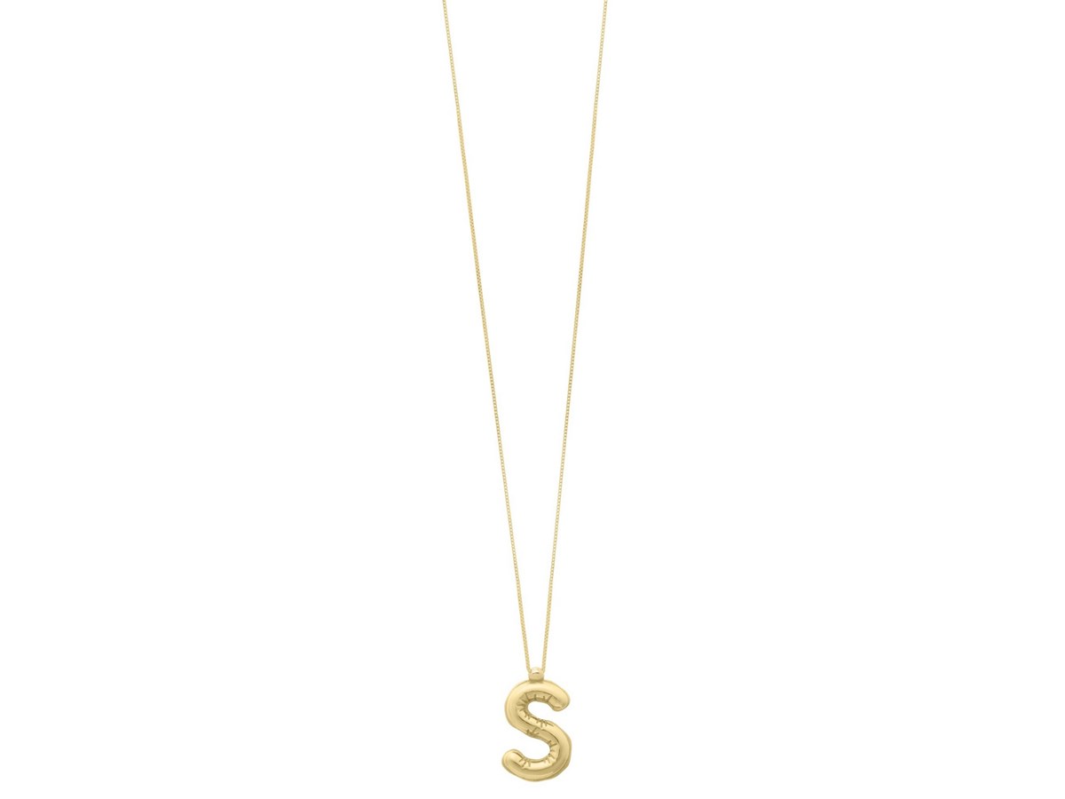 This 14K yellow gold Helium Initial S Pendant showcases a light, modern silhouette that adds effortless shine. Perfect for daily wear or layering, it offers a simple and personalized touch to any jewelry collection.