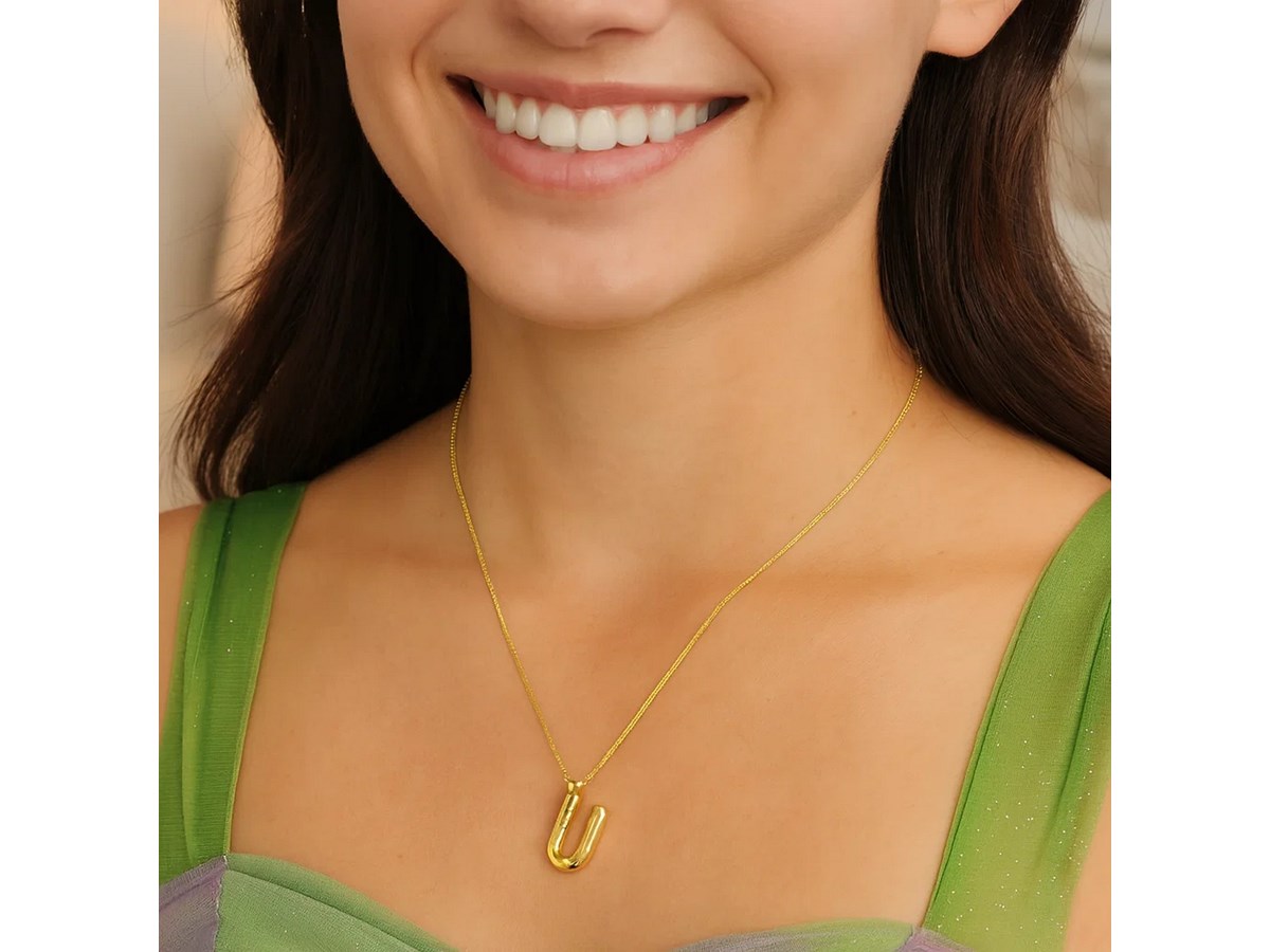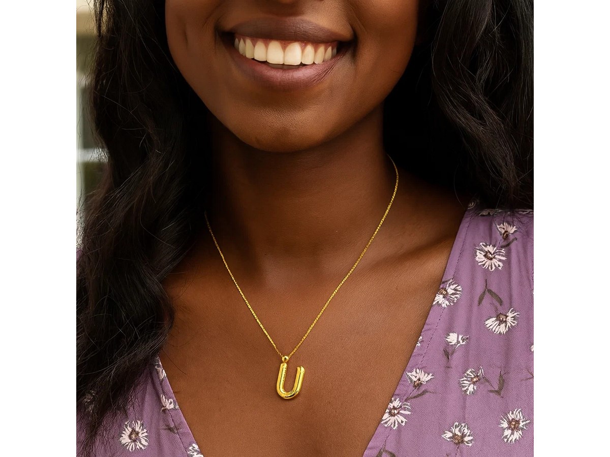 This 14K yellow gold Helium Initial U Pendant features a clean, lightweight design that adds a subtle personalized touch. Perfect for everyday wear or layering, it brings effortless shine to any jewelry style.