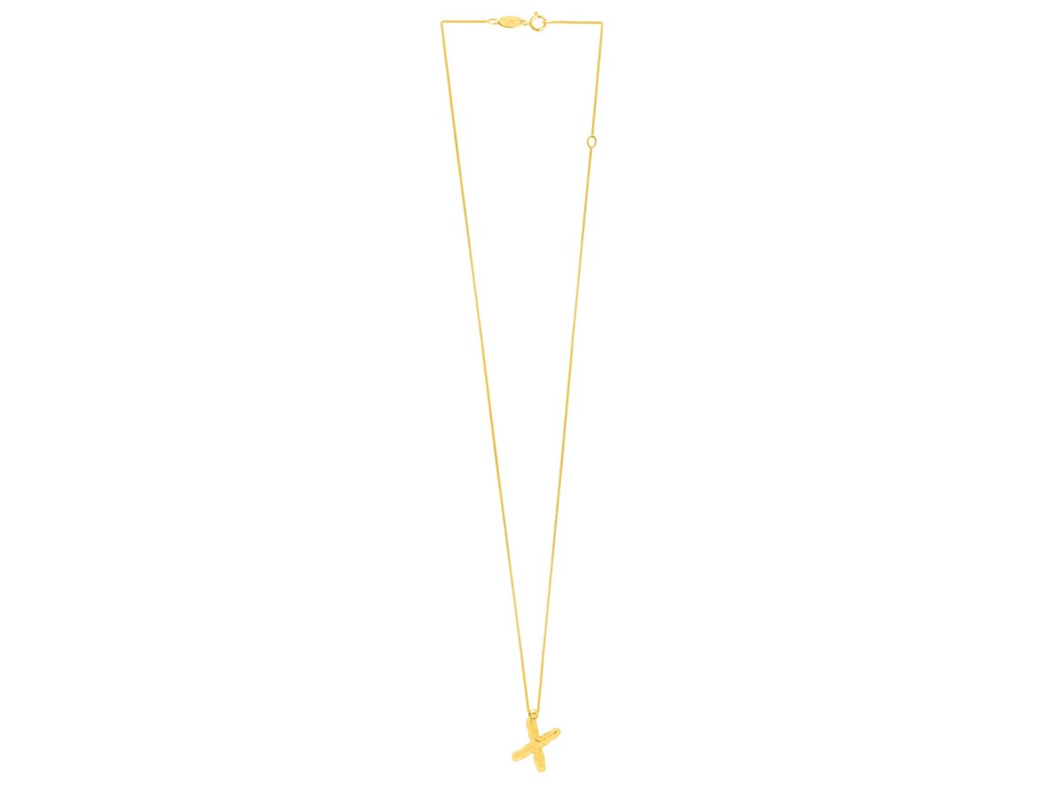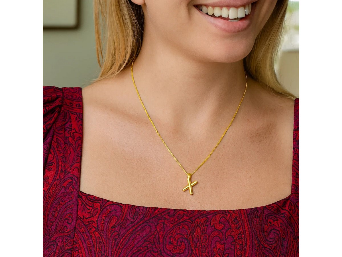 This 14K yellow gold Helium Initial X Pendant features a sleek, lightweight design that offers effortless shine. Perfect for daily wear or layering, it adds a subtle and personalized touch to any jewelry collection.
