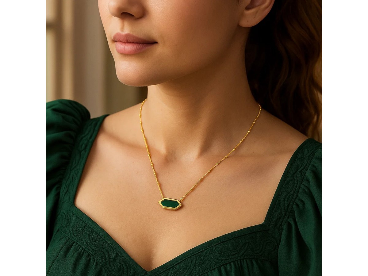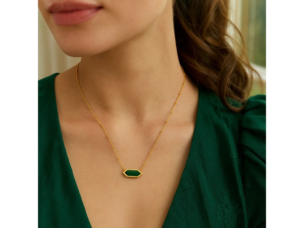 14K Yellow Gold Hexagon Malachite Pendant Necklace
