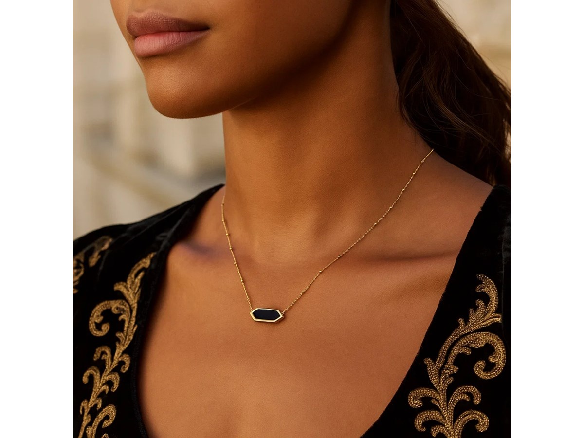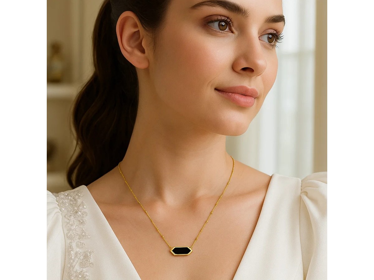 14K Yellow Gold Hexagon Onyx Pendant Necklace